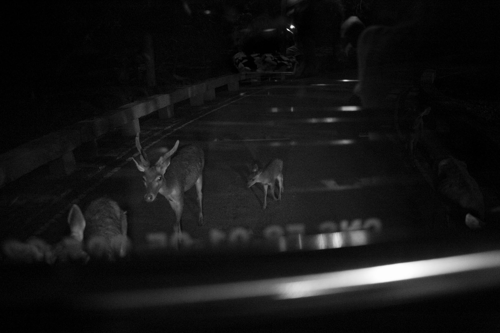 Attracted to darkness as the counterpart of light, Nomura’s photographs feature out-of-focus nighttime scenes, shadows, and dim light, as if the artist were seeking a way out, or the light at the end of a journey. The elements and subjects that she captures seem to appear within the magic brought about by darkness, which the artist occasionally discovers only after the film is developed.