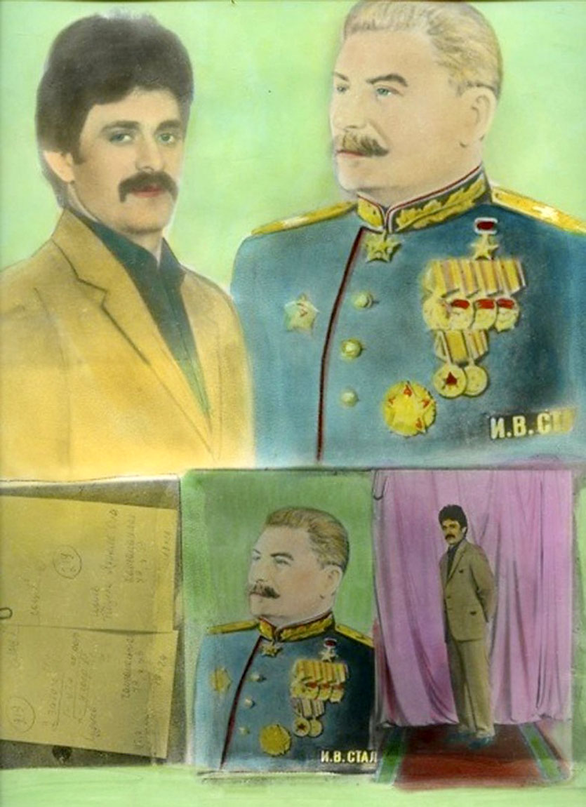 From the late 1950s, in the Khrushchev Thaw after the debunking of Stalin’s cult of personality, the canons of socialist realism softened and permitted a certain freedom in aesthetics, allowing photography to move closer to reality (Dmitri Baltermants’ series Arbat Square). In the postwar period, during the 1950s to 1960s life gradually improved and coloured souvenir photo portraits again appeared on the mass market. They were usually produced by unknown and ‘unofficial’ photographers, since private photo studios that had carried out such commissions since the mid-19th century were now forbidden, and the State exercised a total monopoly on photography by the 1930s. Boris Mikhailov copied and enlarged such kitsch colour photographs as souvenirs to supplement his income at his photo laboratory in Kharkov in the early 1970s. He began collecting them. They form the basis for a new aesthetics he developed in the Lyrics series from the early 1980s. By tinting these naïve photographs he revealed and deconstructed the nature of Soviet myths.