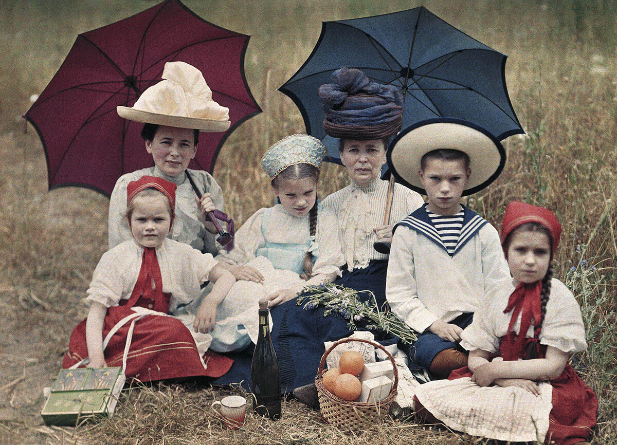 Meanwhile autochrome pictures by the Lumière brothers, with whom Prokudin-Gorsky worked after emigrating from Soviet Russia, became very popular in early 20th-century Russia. Autochromes, colour transparencies on a glass backing, were first produced on an industrial scale in 1907. Granules of potato starch tinted red, yellow and blue were applied to a glass plate. The granules worked as colour filters. Addition of a second layer of granules provided orange, violet and green hues. After that a light-sensitive emulsion was applied. The plate was exposed and developed. Autochromes could be viewed against the light, or projected with the aid of special apparatus, which at that time was manufactured by the Lumière brothers’ own company (diascopes, chromodiascopes, mirrored stereoscopes, etc.). The Lumière brothers’ autochromes were used, for example, by Pyotr Vedenisov, a prosperous nobleman and graduate of the Moscow Conservatoire, who settled in Yalta, in the Crimea, in the late 1880s. As was the case with the Lumière brothers’ autochromes, Vedenisov’s favoured subject matter was the photographer’s own family life. However, what was at first sight very private and personal photography later provided an excellent description of the typical lifestyle enjoyed by educated Russian noblemen in the early 20th century.