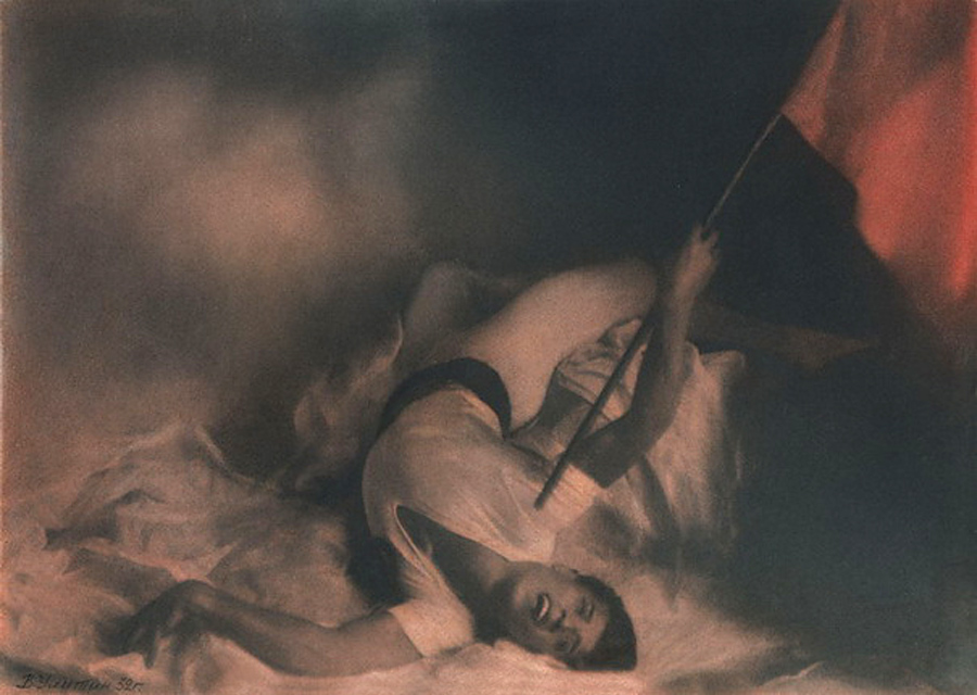 Pictorialism was one of the most important tendencies of early 20th-century Russian photography, and Russian Pictorialist photographers were awarded gold and silver medals at international exhibitions. Pictorial photography differed not only by the method of shooting and complex printing techniques intended to bring photography closer to painting, but also by the selection of traditional themes. Romantic landscapes and architectural ruins or nude studies were from the point of view of socialist realism dangerous remnants from the past. Some of the Pictorialist photographers ended up in Stalin’s prison camps, and were forbidden from practising their profession or settling in the capital or other large cities. Those who remained at liberty – for example, Vasily Ulitin, a participant in major international photo exhibitions and recipient of medals and diplomas in Paris, London, Berlin, Los Angeles, Toronto, Tokyo and Rome – tried with difficulty to adapt to the new reality and attempted to depict revolutionary subjects (Flames of Paris, Red Army Soldier), thereby gaining indulgence and the right to work from the Bolsheviks.