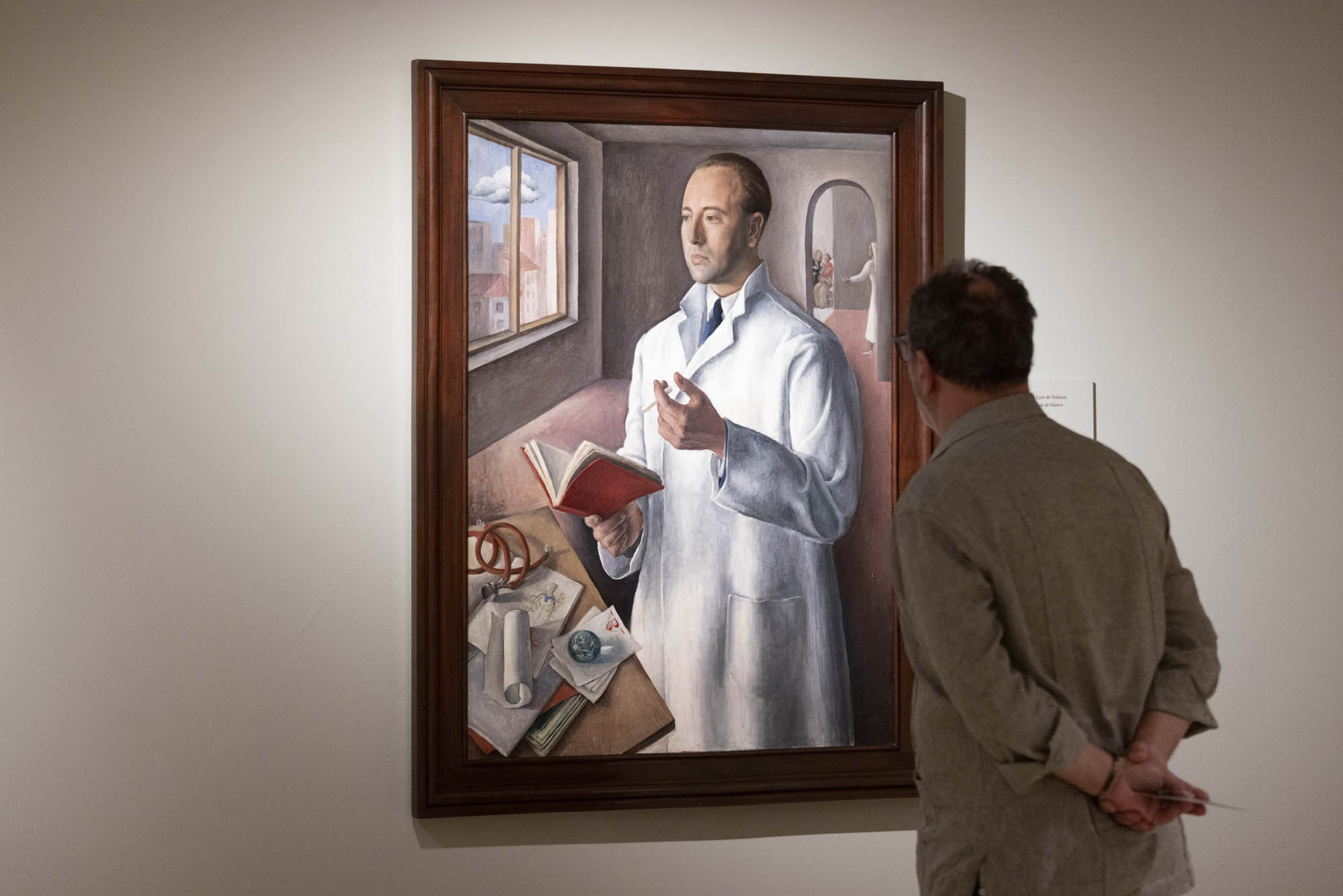 Installation view of the exhibition 'Rosario de Velasco' at the Museo Nacional Thyssen-Bornemisza showing Velasco's 'Portrait of Doctor Luis de Velasco' (c. 1933)