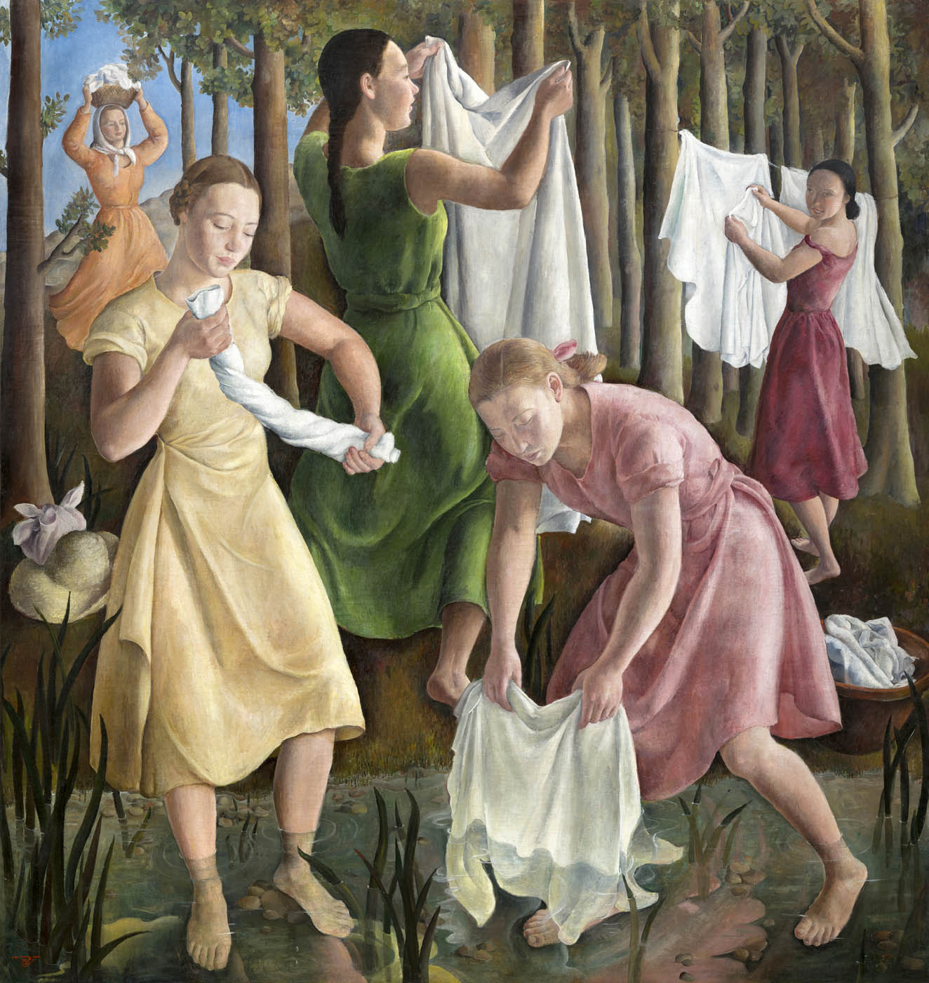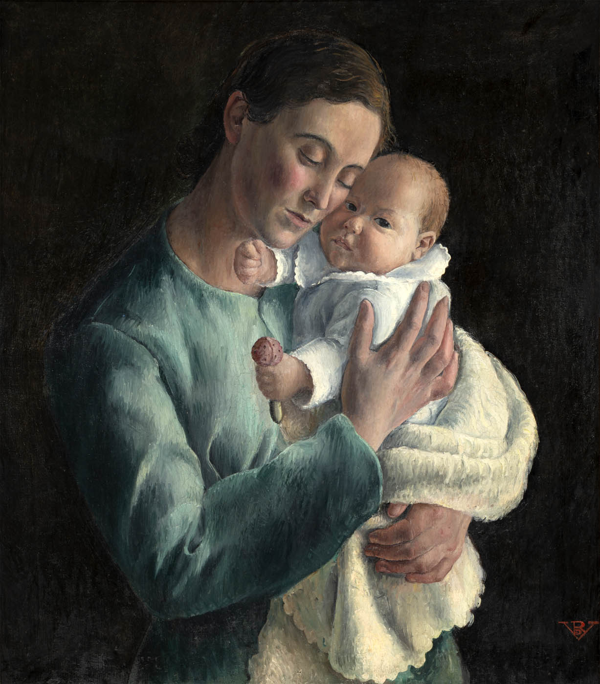 While New Objectivity mines the satirical, debauched air of decadence of the Weimar Republic, de Velasco’s paintings are a paen (perhaps even a sermon) to motherhood, heterosexuality, religiosity, utopianism and the fascist desire for a clean, lean and muscular art. Figurative stylisation and idealisation are used to evidence this desire for wholesomeness in her paintings of gypsies, peasants and working people (just as the stereotypical form of modern realist painting imposed by Stalin following his rise to power after the death of Lenin in 1924 crushed all extant art movements in Russia including the wonderful, briefly flowering Ukrainian modernist movement).