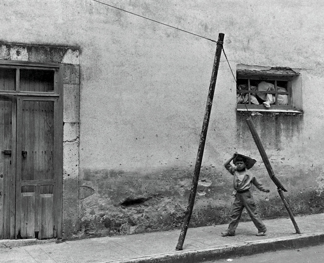 “One of my early heroes in photography was Manuel Alvarez Bravo whom I rate as one of the best photographers that has ever lived, up there with Atget and Sudek. His photograph Parabola optica (Optical Parable, 1931, below) lays the foundation for an inherent language of Mexican photography: that of a parable, a short allegorical story designed to illustrate or teach some truth, religious principle, or moral lesson. Many Mexican photographs tell such stories based on the mythology of the country: there are elements of the absurd, surrealism, macabre, revolution, political and socio-economic issues, also of death, violence, beauty, youth, sexuality and religion to name but a few – a search for national identity that is balanced in the photographs of Bravo by a sense of inner peace and redemption. This potent mix of issues and emotions is what makes Mexican photography so powerful and substantive. In the “presence” (or present, the awareness of the here and now) of Mexican photography there is a definite calligraphy of the body in space in most of the work. This handwriting is idiosyncratic and emotive; it draws the viewer into an intimate narrative embrace.