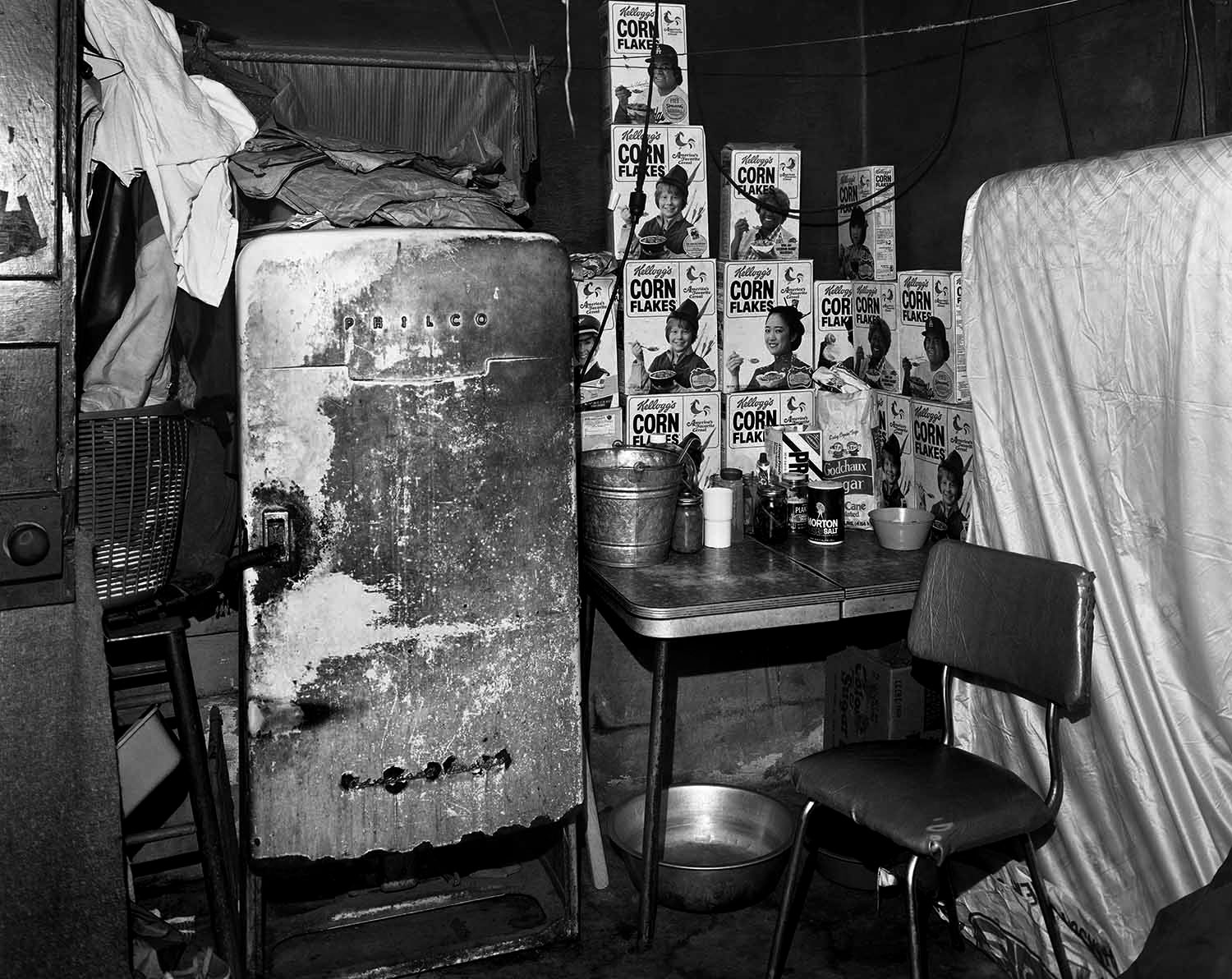 “As I rounded a corner several miles north of Natchez, Mississippi, a stunning sight – a brilliant pink stucco house framed by a blooming wisteria arbor caused me to pull over. I was compelled to knock on the door and found myself and Mr. and Mrs. Fulton, an elderly black couple standing in the cramped dimly lit kitchen whose illumination came from a bare-bulb hanging from the ceiling. Pushed up against a tattered refrigerator was a Formica table upon which provided a foundation for structure made of Kellog Cornflakes boxes. Each box bore a photograph of a beaming face. Boneheadedly I asked Mrs. Fulton if she liked cornflakes. With her gaze lowered she replied no. She then told me she disliked taking meals by herself now that her children had grown and gone.”