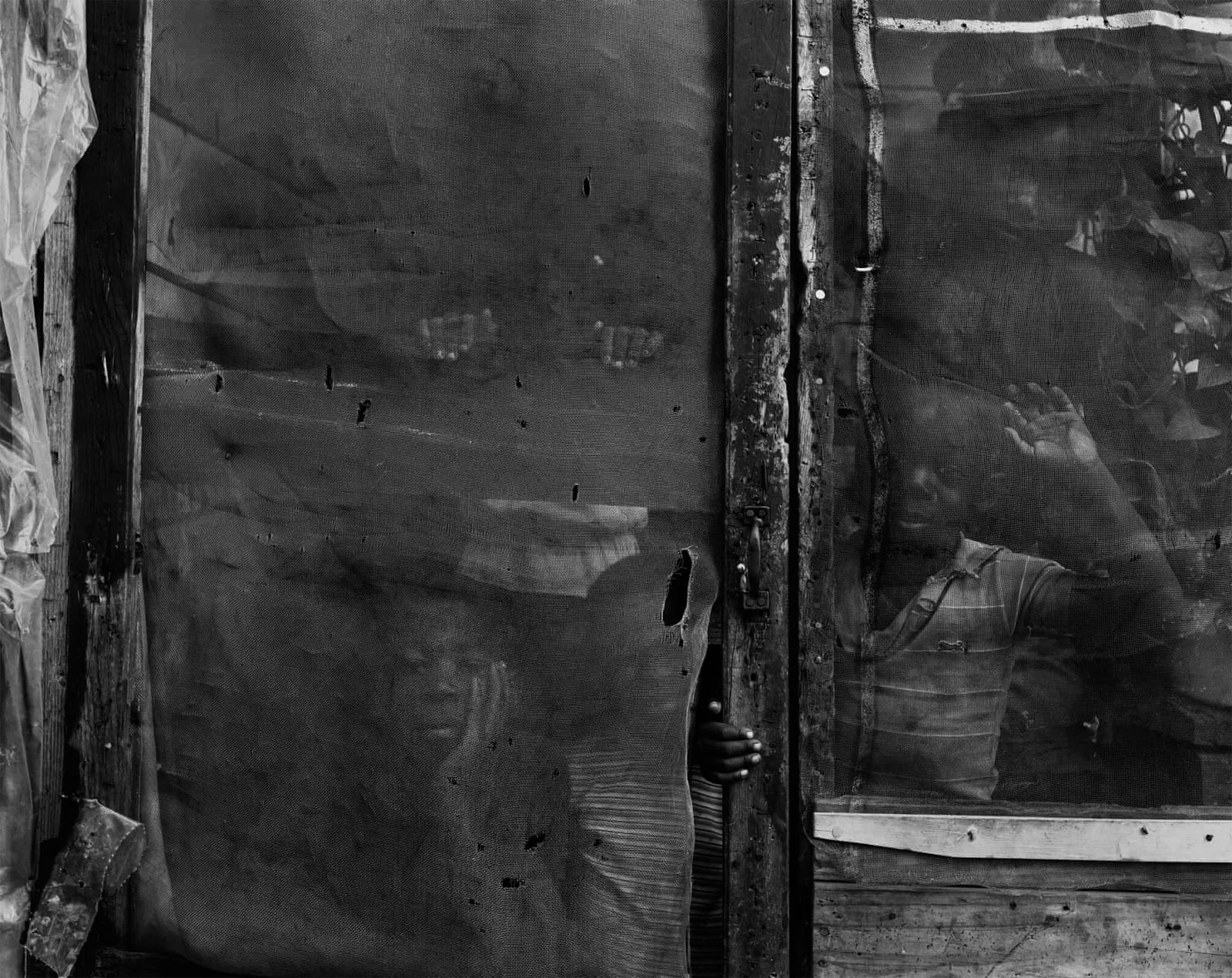 “The process I adopted in successive road trips during my seven-year project involved splitting time between revisiting places I had previously photographed and seeking out new locations. The families who lived on this street in Rosedale, Mississippi, knew me from prior visits. Children were always thrilled at my arrival, and they delighted in taking turns shrouding their heads under my black focusing cloth that allowed them to peer at the dim image projected on the ground glass of my view camera.” (Text from the Guardian website)