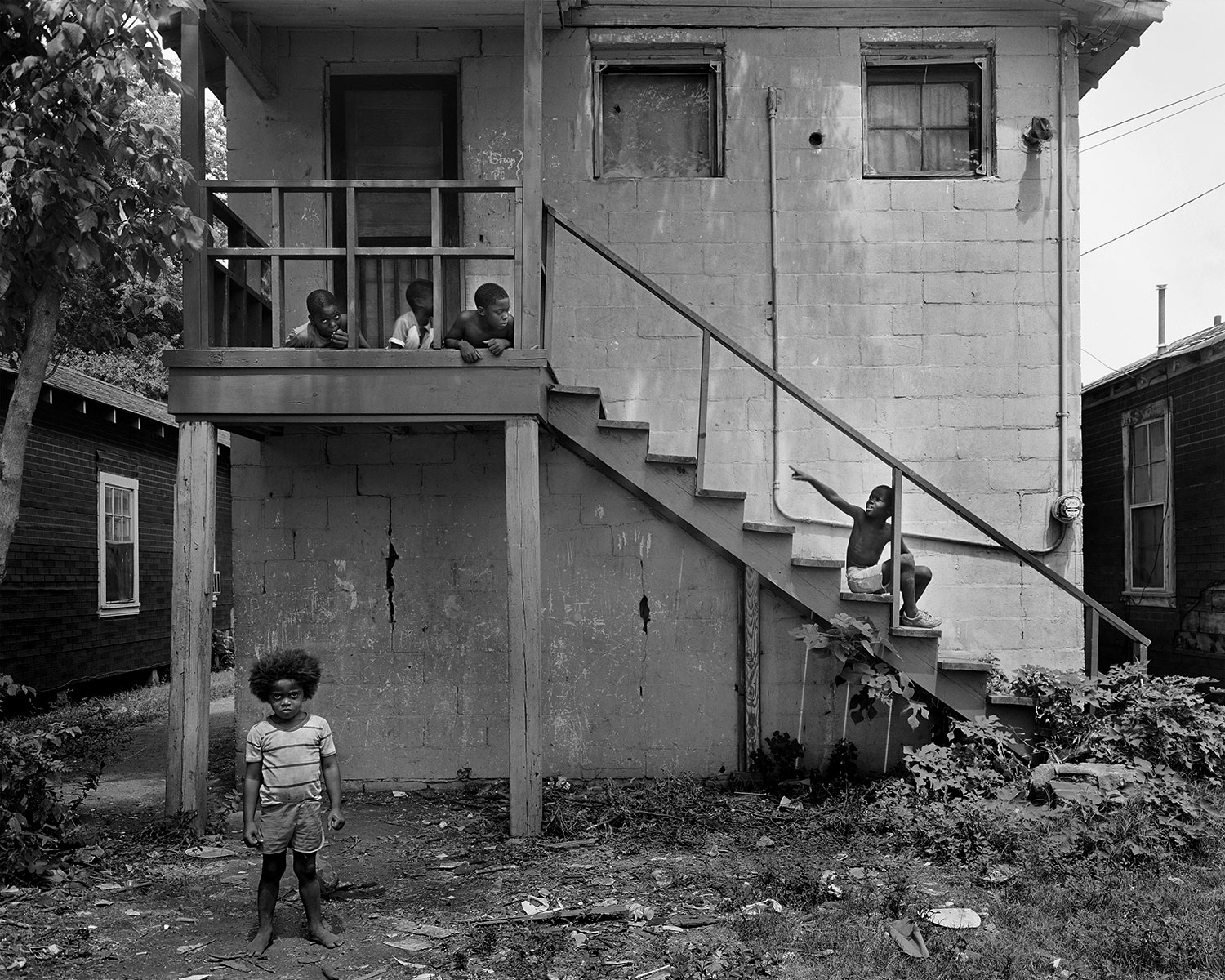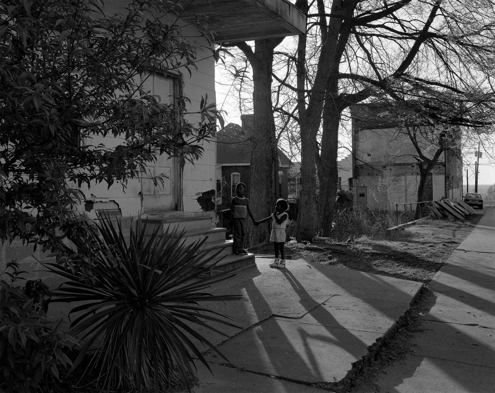 ‘The process I adopted in successive road trips during my seven-year project involved splitting time between revisiting places I had previously photographed and seeking out new locations. The families who lived on this street in Rosedale, Mississippi, knew me from prior visits. Children were always thrilled at my arrival, and they delighted in taking turns shrouding their heads under my black focusing cloth that allowed them to peer at the dim image projected on the ground glass of my view camera. They were more than eager to arrange themselves for this photograph’