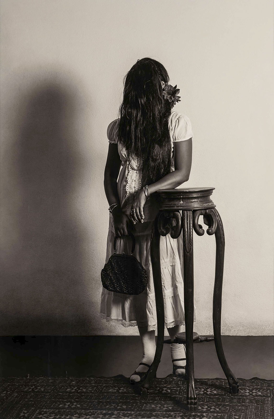 A set of 21 similarly composed photographs depict the legs of men wearing mundus. In her 2017 series Vincent Uncle, Antony investigates childhood memories and comments on the male figure within the Indian family by portraying her subjects from the perspective of a child.