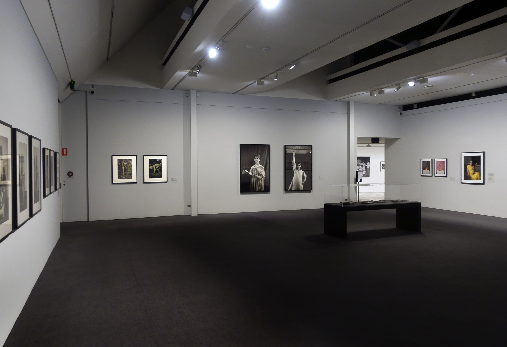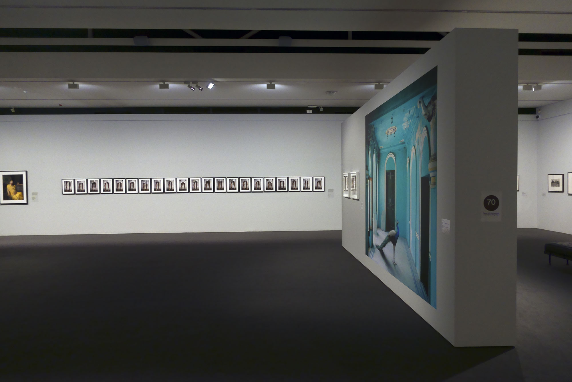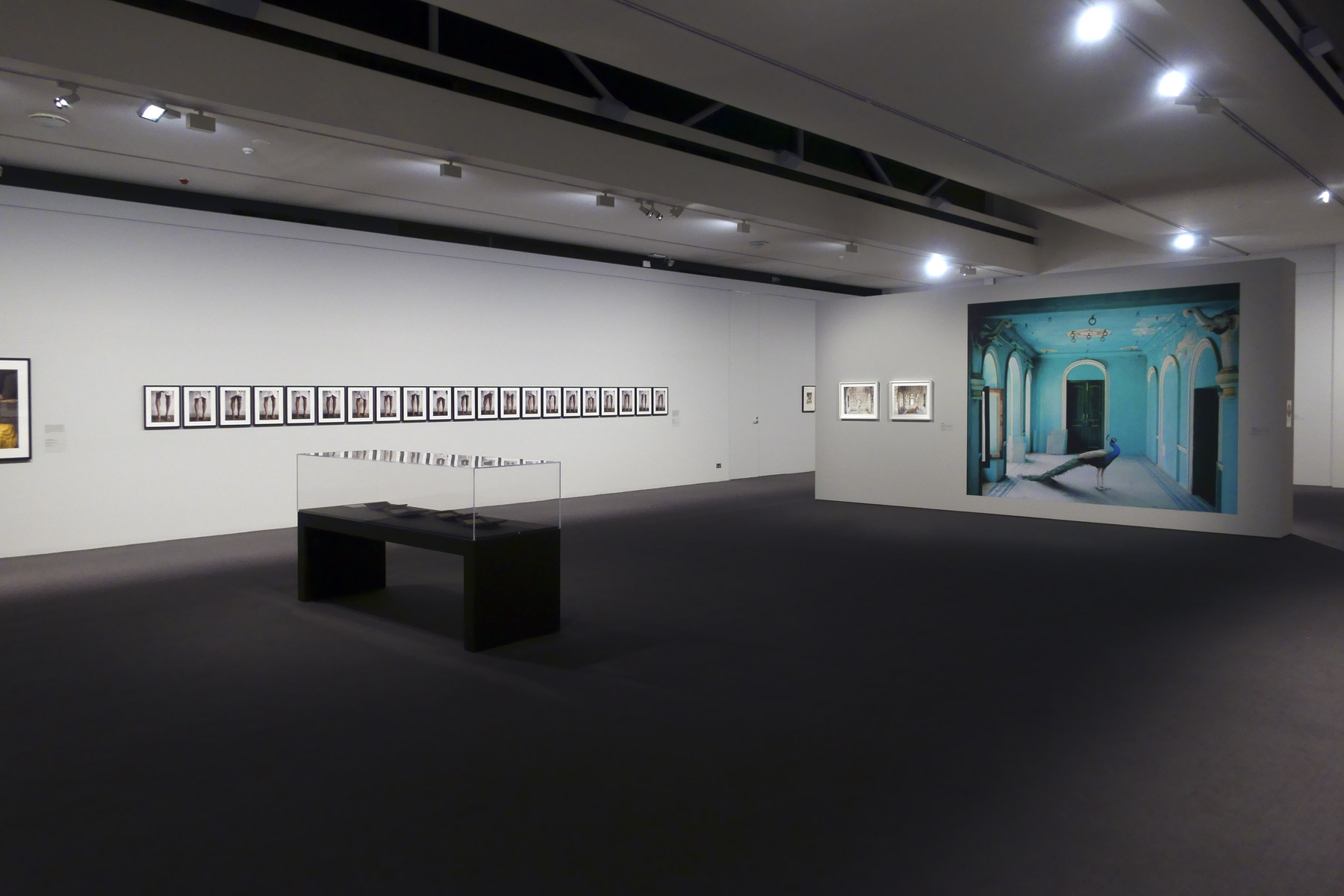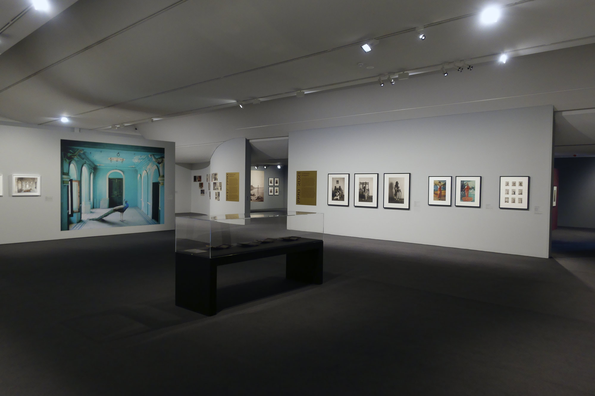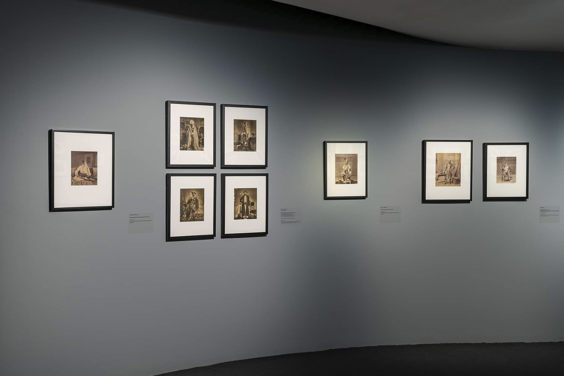 Installation view of the exhibition Visions of India: from the colonial to the contemporary at the Monash Gallery of Art showing the photographs of Sawai Ram Singh II, Maharaja of Jaipur (c. 1860, below)