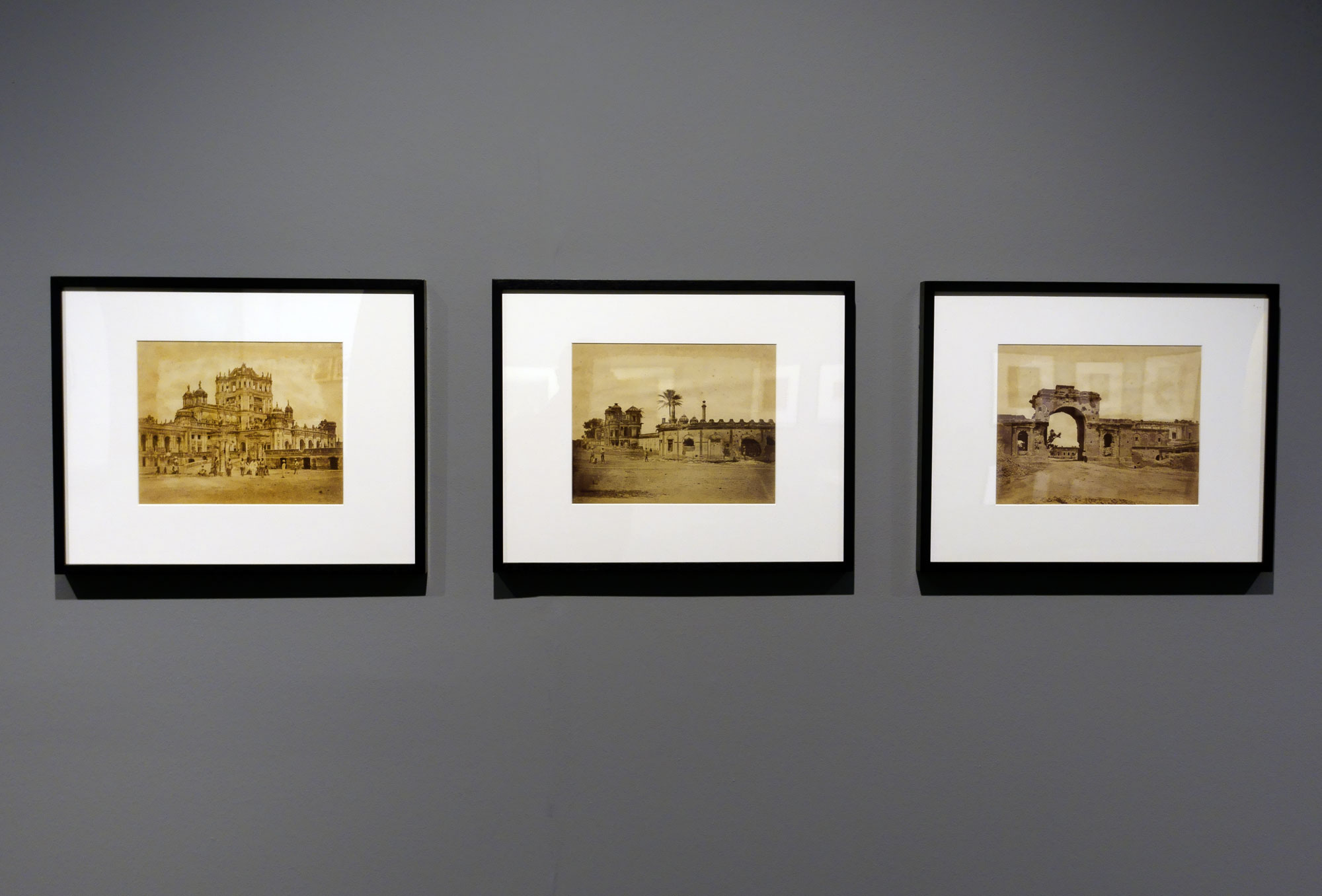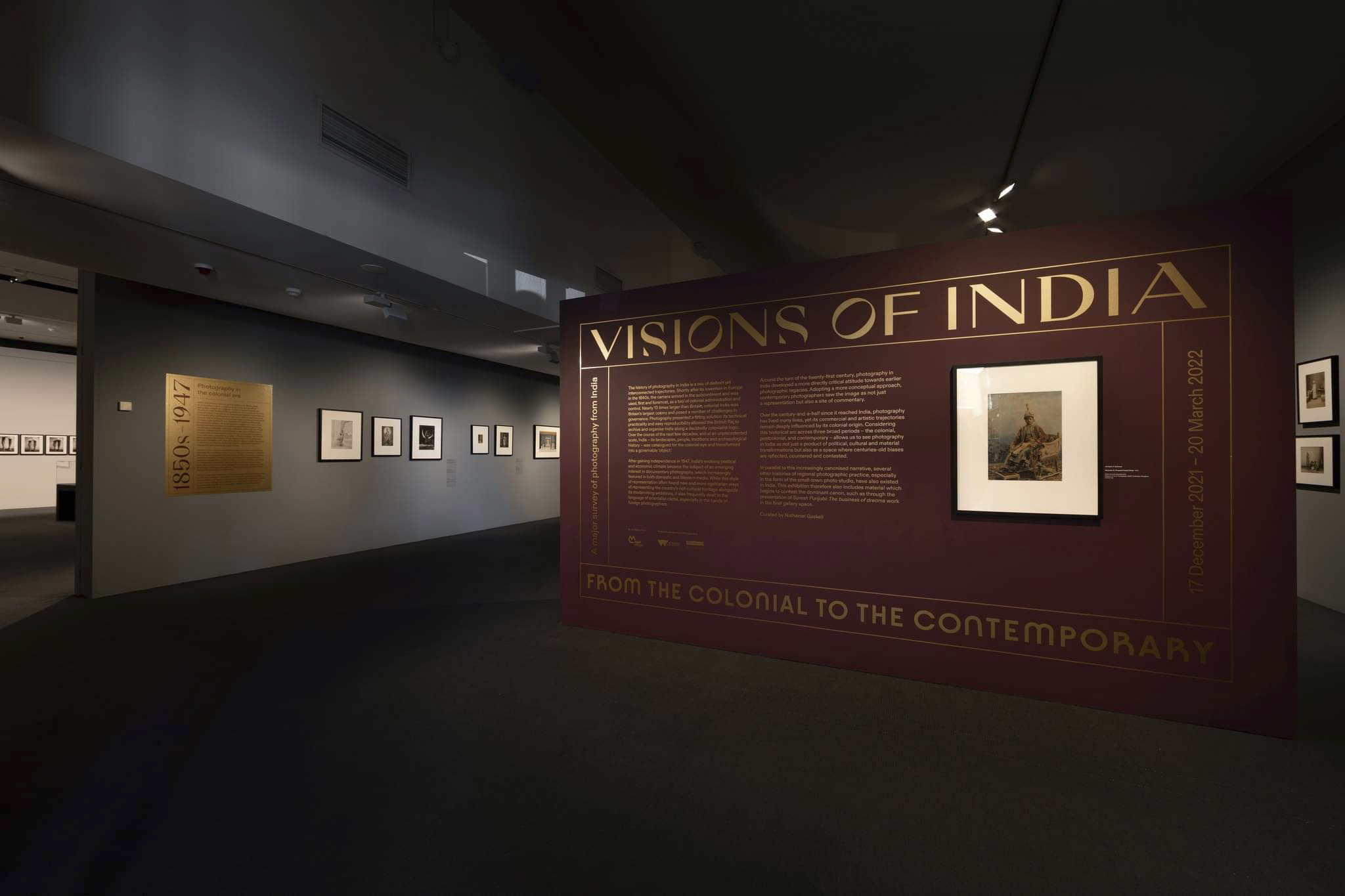 Installation view of the exhibition Visions of India: from the colonial to the contemporary at the Monash Gallery of Art showing artworks (left to right) by Johnson & Hoffman, Lala Deen Dayal and Bourne & Shepherd (see below)