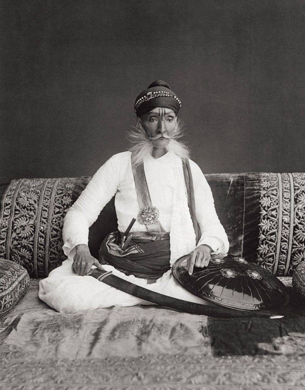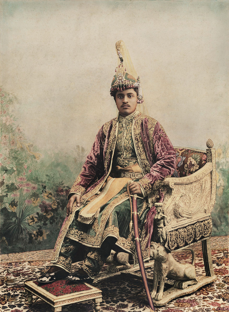John Falconer in his book 2018 book Under Indian Skies: 19th-Century Photographs from a Private Collection observes, “A number of India’s princes became deeply interested in photography and both practiced and collected it, several also retaining state photographers… The portraiture of Indian royalty also proved a popular genre. Portraits posed in the setting of the European studio, but celebrating an oriental luxury of costume, jewellery and other accoutrements, were commissioned not only by rulers themselves but were also collected by Western customers, as the contents of many collections attest.”1