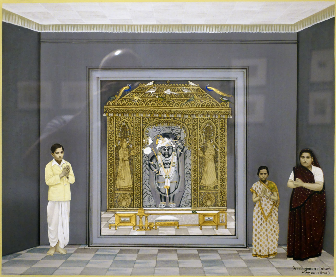 A family worshipping deity Shrinathji during the festival of Nanda (installation view)