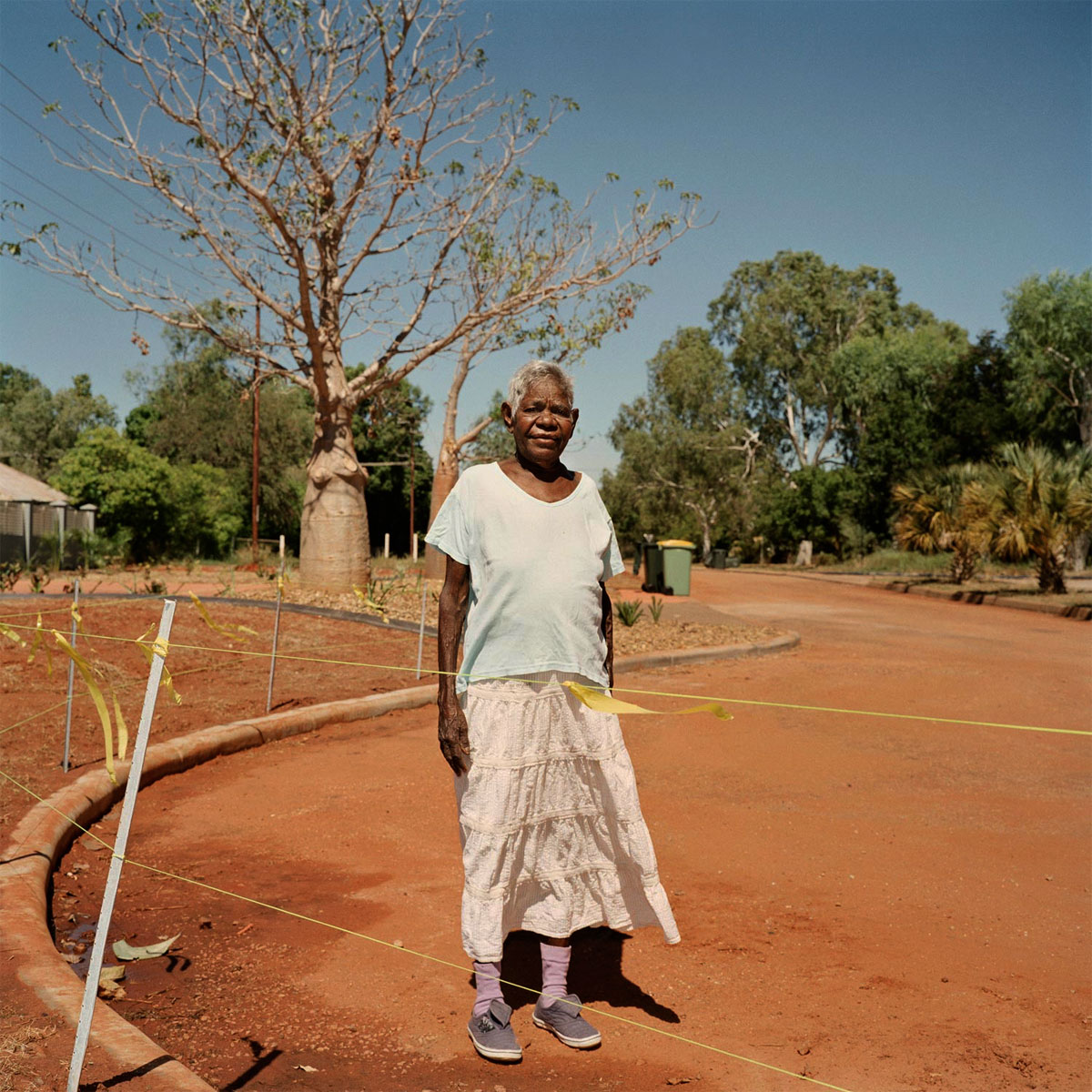 These intimate portraits of Wik Elders from the community of Aurukun, Far North Queensland, were inspired by the hard-fought battle for custodianship and recognition of the Wik people’s connection to traditional land and waterways. In this image, Maynard documents cultural leader and activist Gladys Tybingoompa, who is remembered today as a prolific figure in the Wik vs Queensland Case and a trailblazer for Indigenous land rights across Australia.