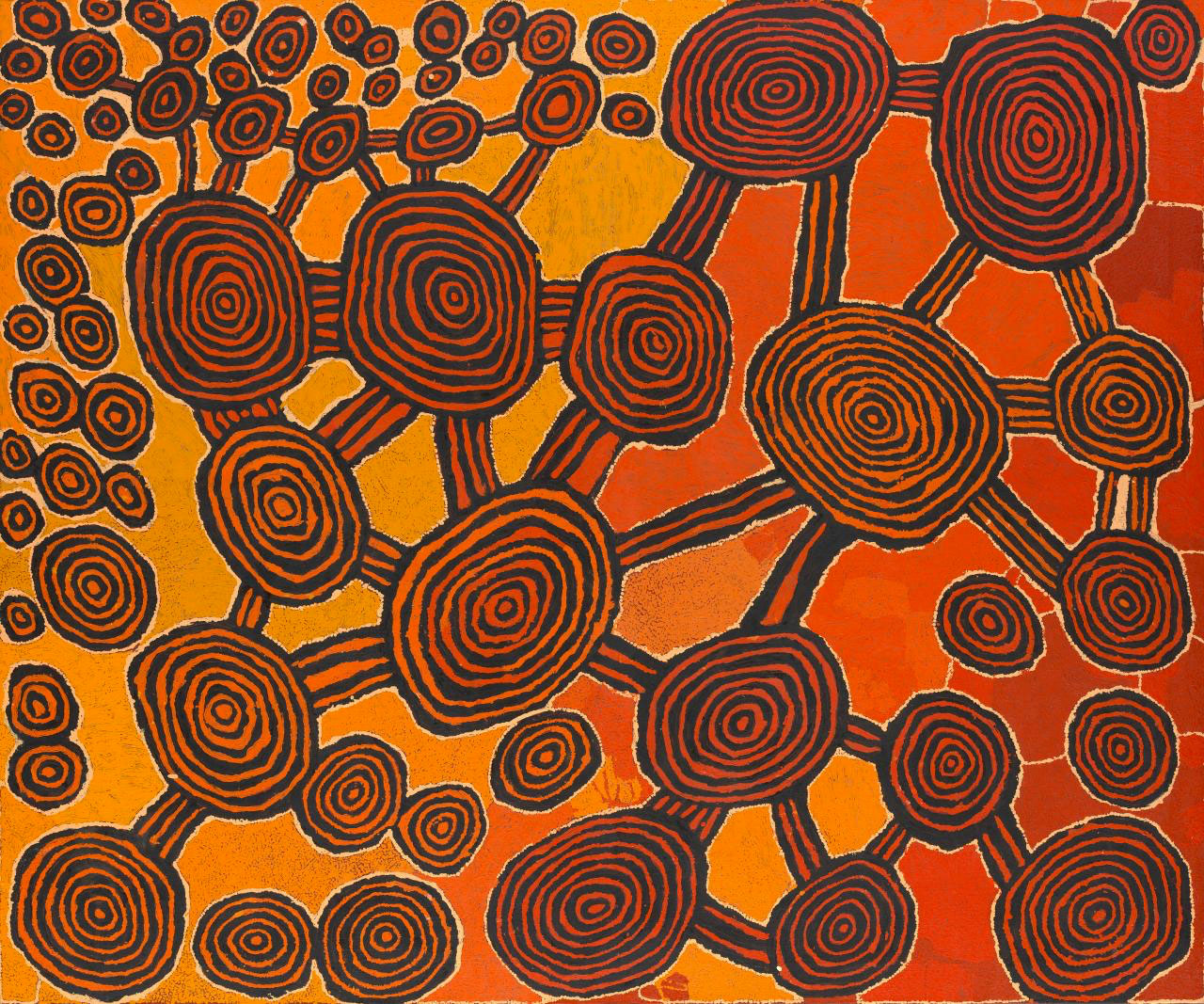 This exhibition of 21st century art highlights today’s momentous art movement which originated at Papunya in 1971 when senior men decoded their archival narratives and laws, forging a new form shared by many Indigenous peoples across the Western Desert.