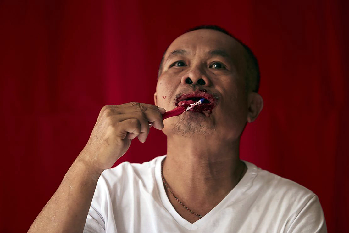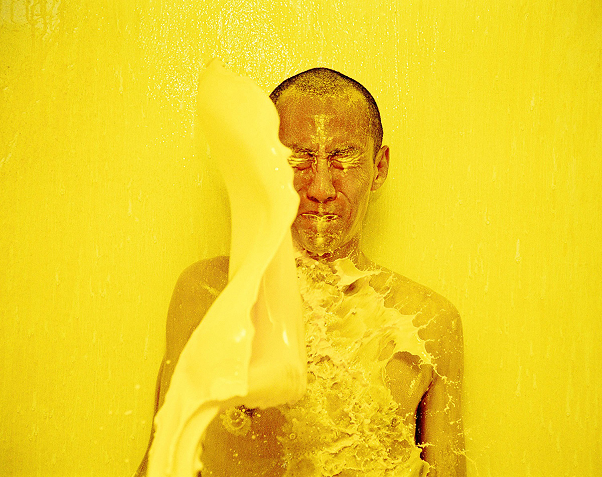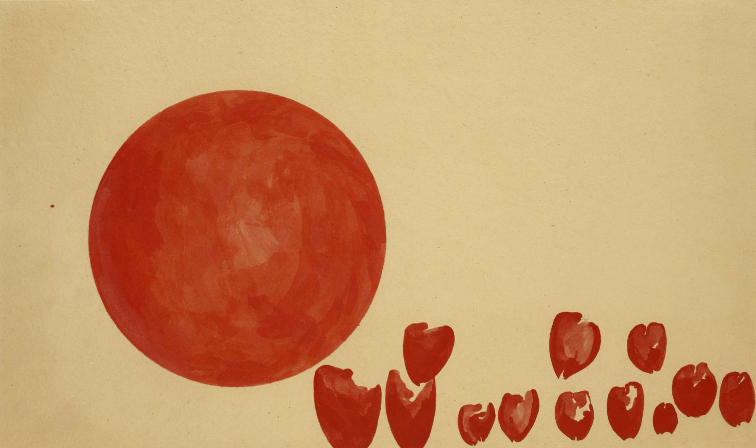 In this playful study, the shadows dominate: the bowl of vittles atop the man’s shadow suggest a sombrero shielding a sleeping man’s face during an afternoon siesta.