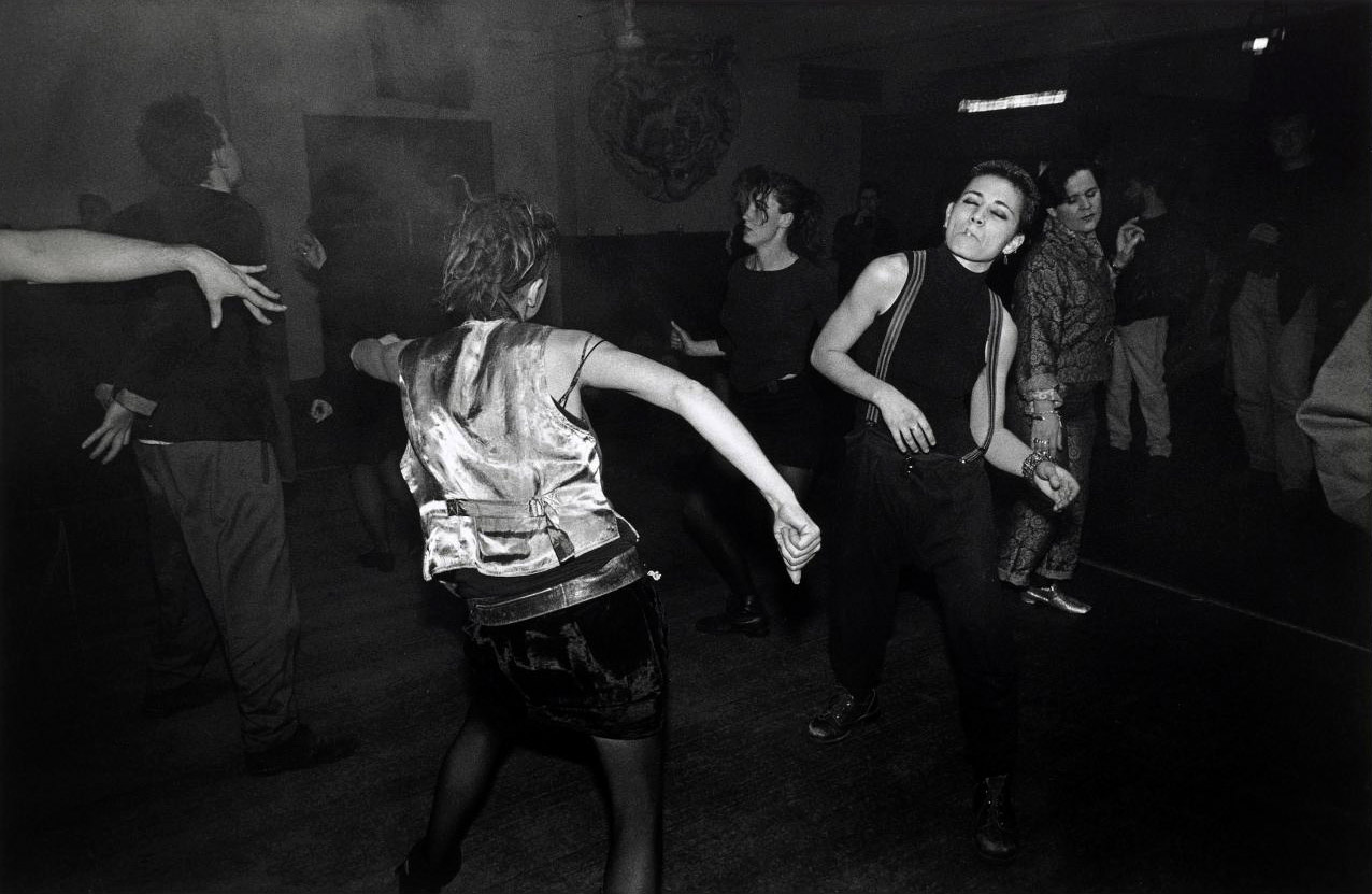 Dancing and entertainment were features of Ruth Maddison’s work throughout the 1980s. These photographs reflected Maddison’s own social life, which often revolved around Melbourne’s pubs and nightclubs. But there was also a classical documentary function to her photographs of trade union dances and the annual women’s dance at St Kilda Town Hall. These pictures reflected social spaces that had been important to activist communities, but which by the mid-1980s were in the process of passing away; as women’s groups began to fragment, and as the membership of labour organisations changed. The photograph shown here of the Vehicle Builders’ Union Ball at Collingwood Town Hall were part of a commission. Like many photographers in this exhibition (including Helen Grace, Sandy Edwards and Ponch Hawkes), political affiliation and professional practice often came together in commissioned projects for labour and social movements.