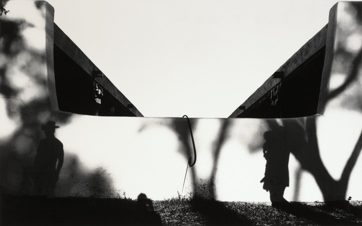 Ray Metzker’s Composites series, begun in 1964, connected in a dramatic fashion his interests in contrasts of light and shadow, his strong sense of design, and his earlier explorations of the multiple image. Metzker studied at Chicago’s Institute of Design, where a rigorously formal, problem-solving approach to photography was taught. For this series he assembled grids of individual photographs to create complex image-fields. When viewed from a distance, this work reads as an abstract, rhythmic pattern of light and dark. On closer inspection, however, many crisply descriptive images are revealed. The Composites function somewhat like short filmstrips. The mystery of these brief narratives is exaggerated by the repetitive design and provides a unique opportunity, in Metzker’s words, “to deal with complexity of succession and simultaneity, of collected and related moments.”