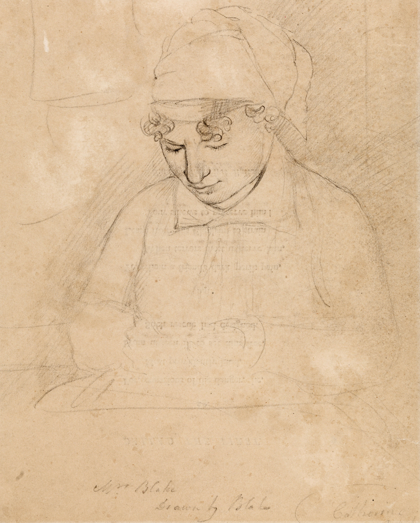A crucial presence in Blake’s life, Catherine offered both practical assistance and became an unacknowledged hand in the production of his engravings and illuminated books. His visual art and poetry began to develop in original ways only after their marriage in 1782. At the time she was illiterate but learnt to read and write with her husband and became an accomplished printmaker in her own right. Together, these rare examples of Blake’s portraiture highlight the ways in which his extraordinary vision was dependent on the domestic stability of his life with Catherine.