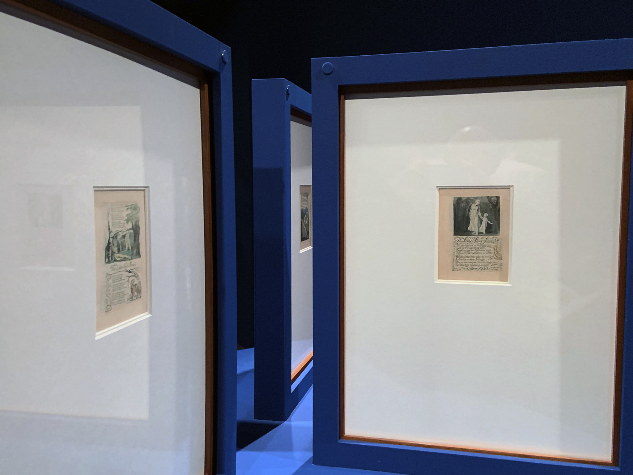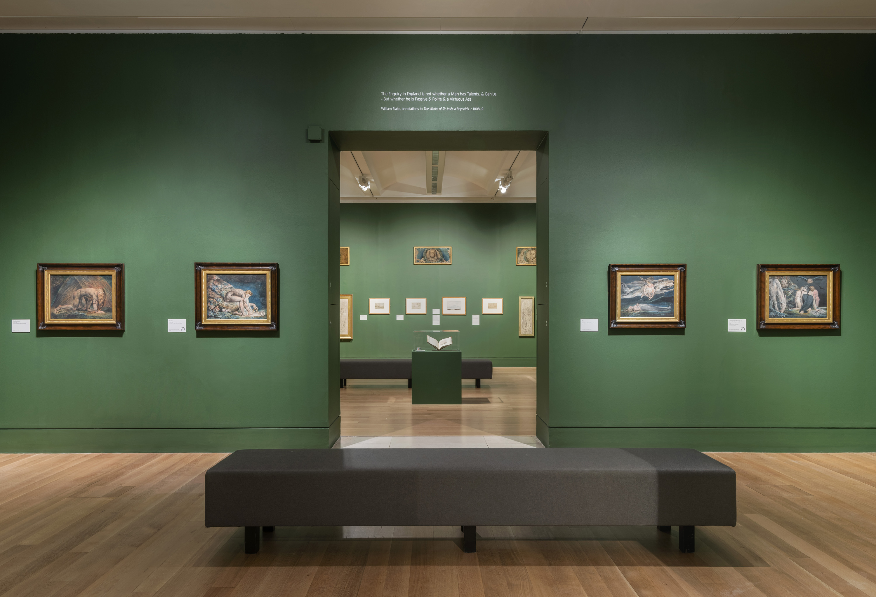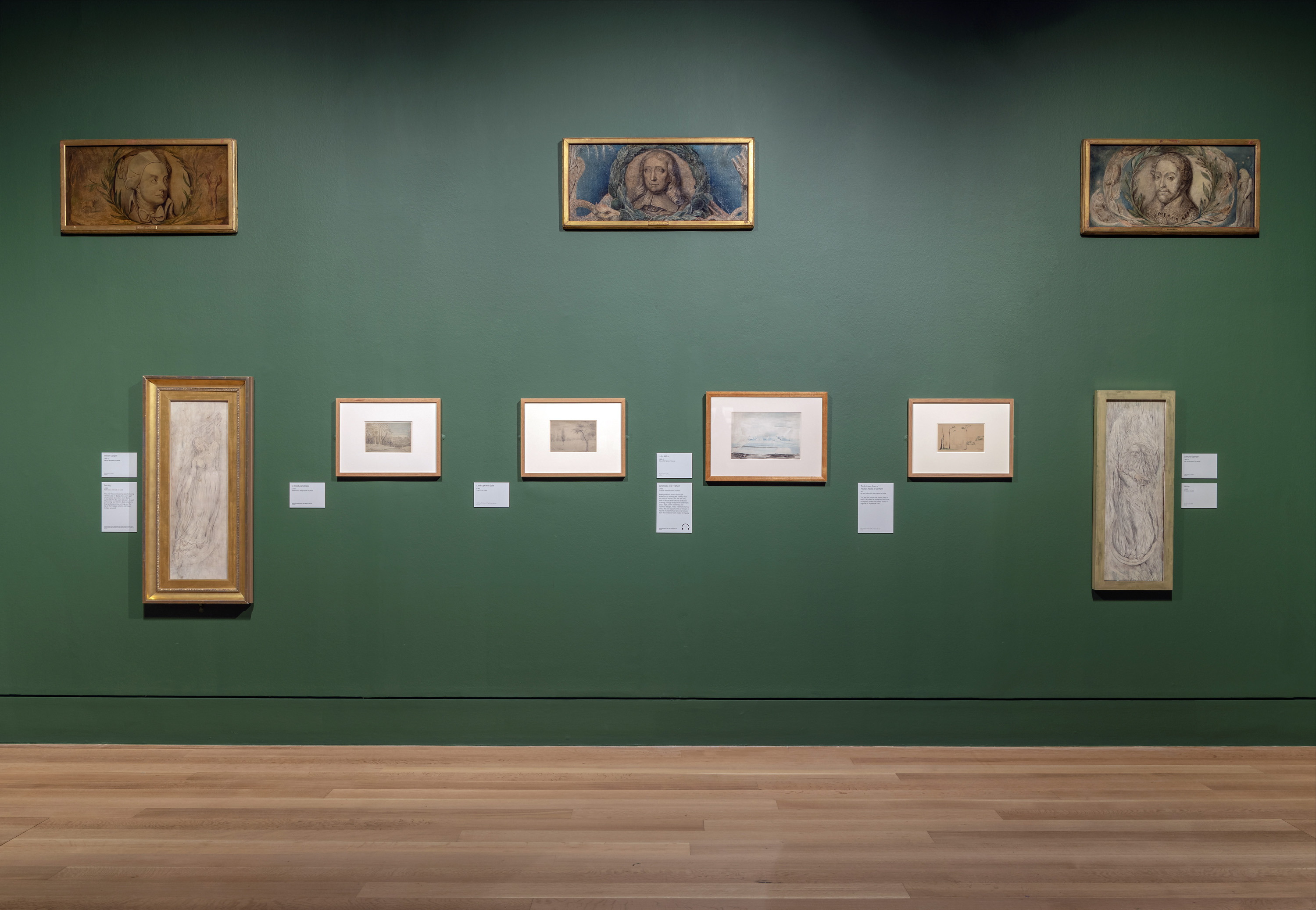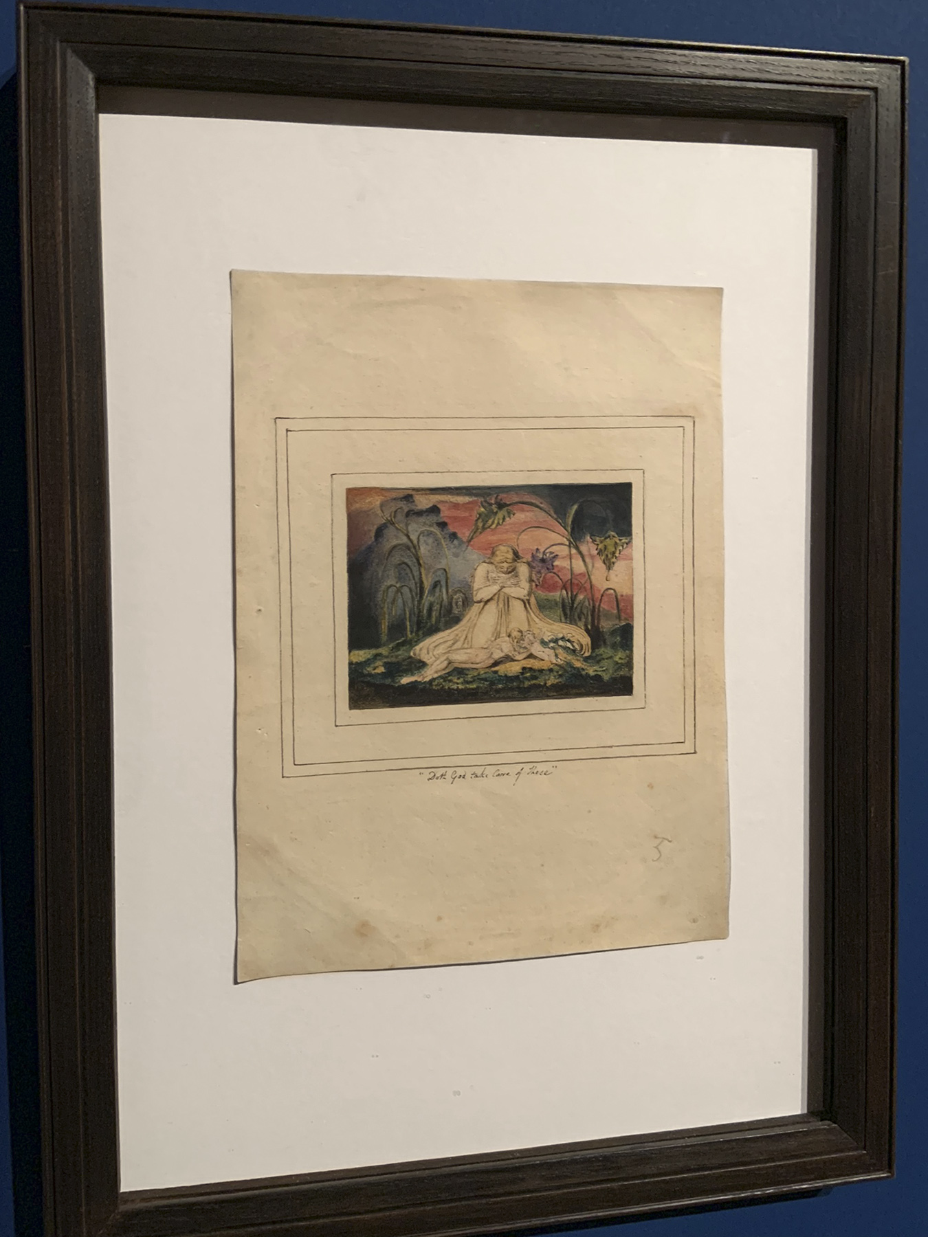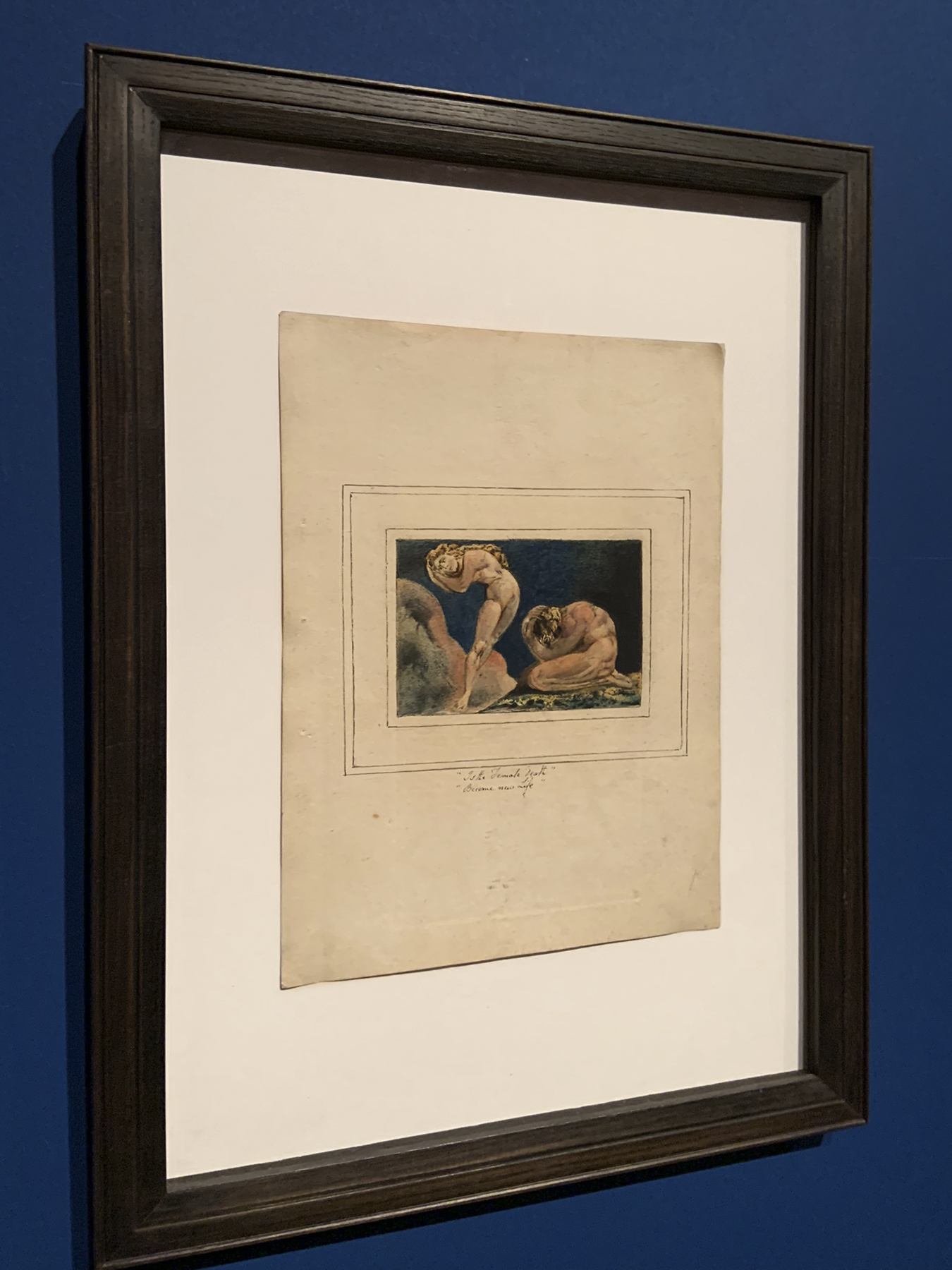 Installation view of the exhibition William Blake at Tate Britain, London showing Blake’s Age Teaching Youth (c. 1785-1790)