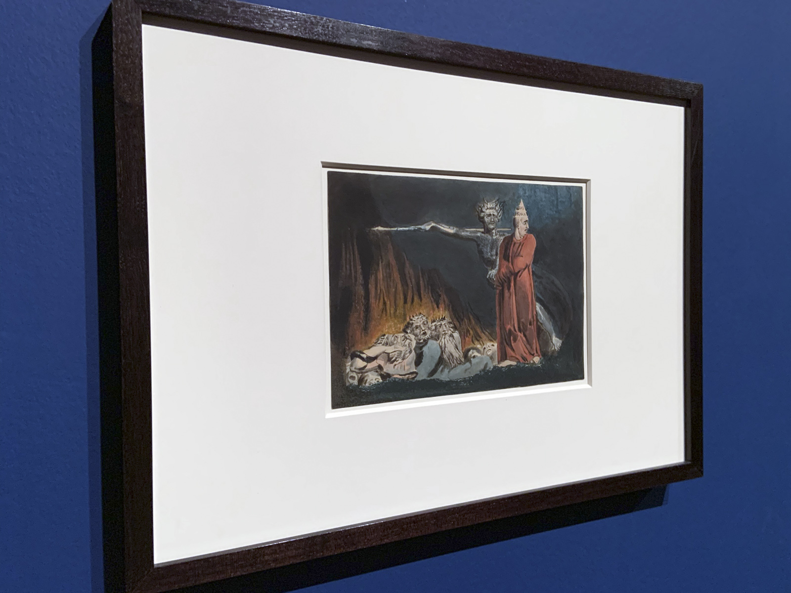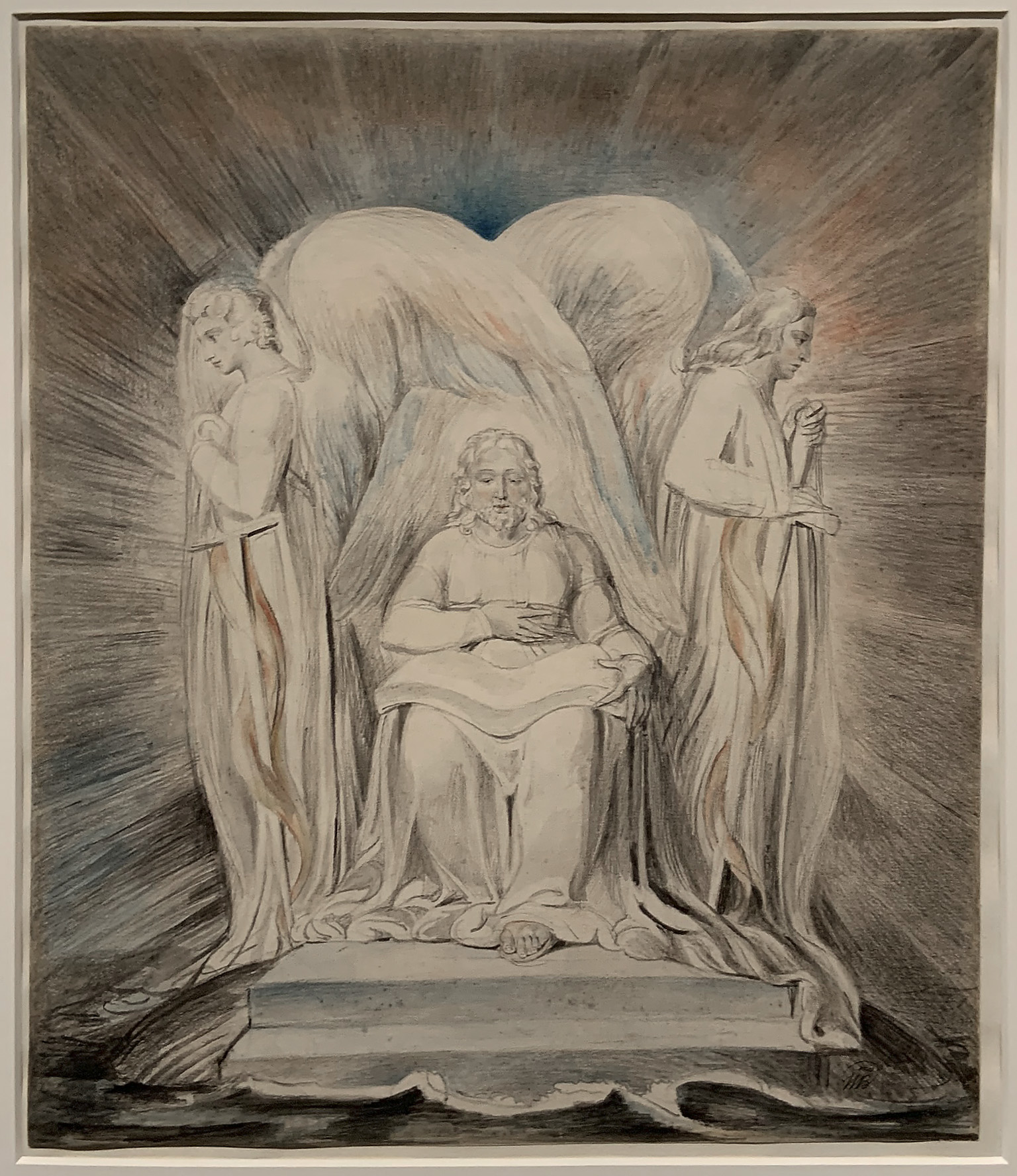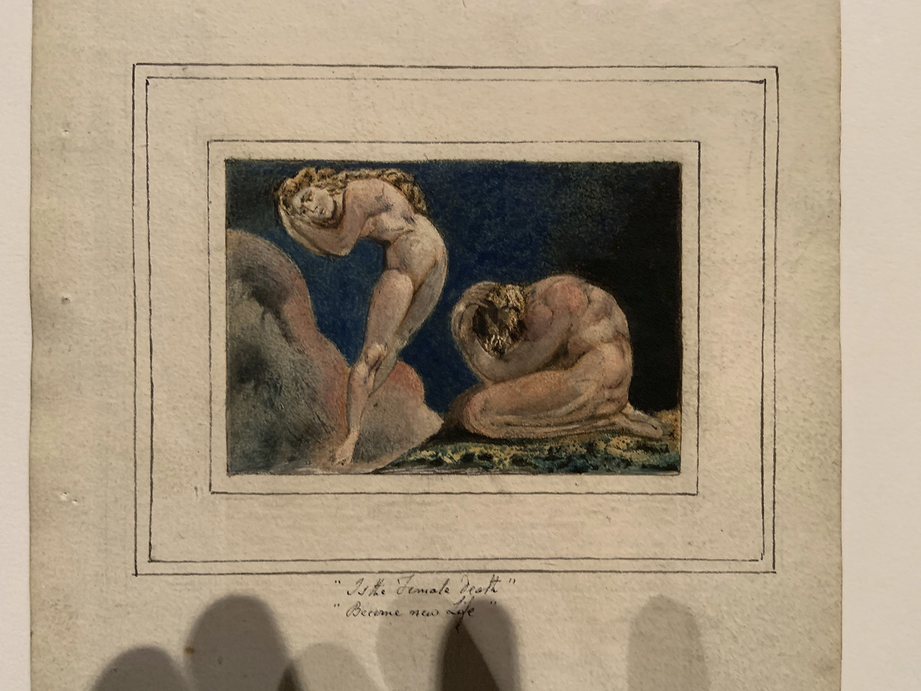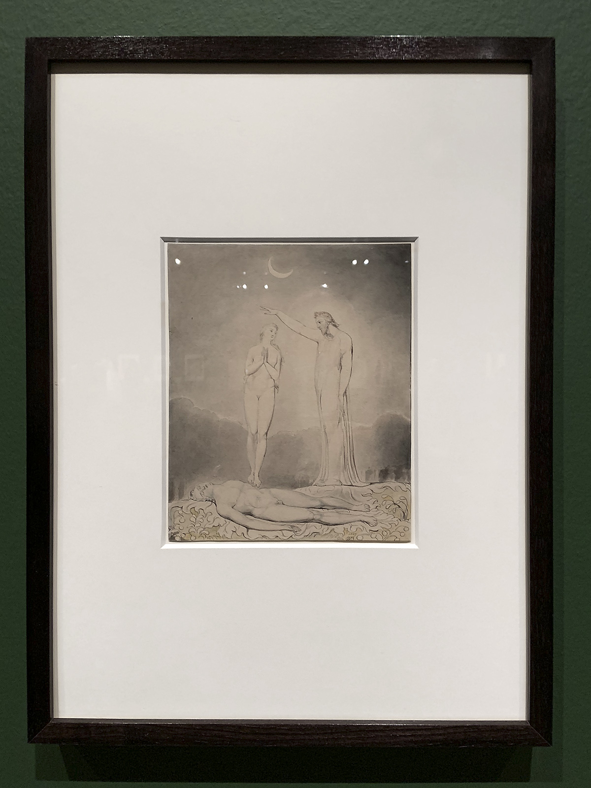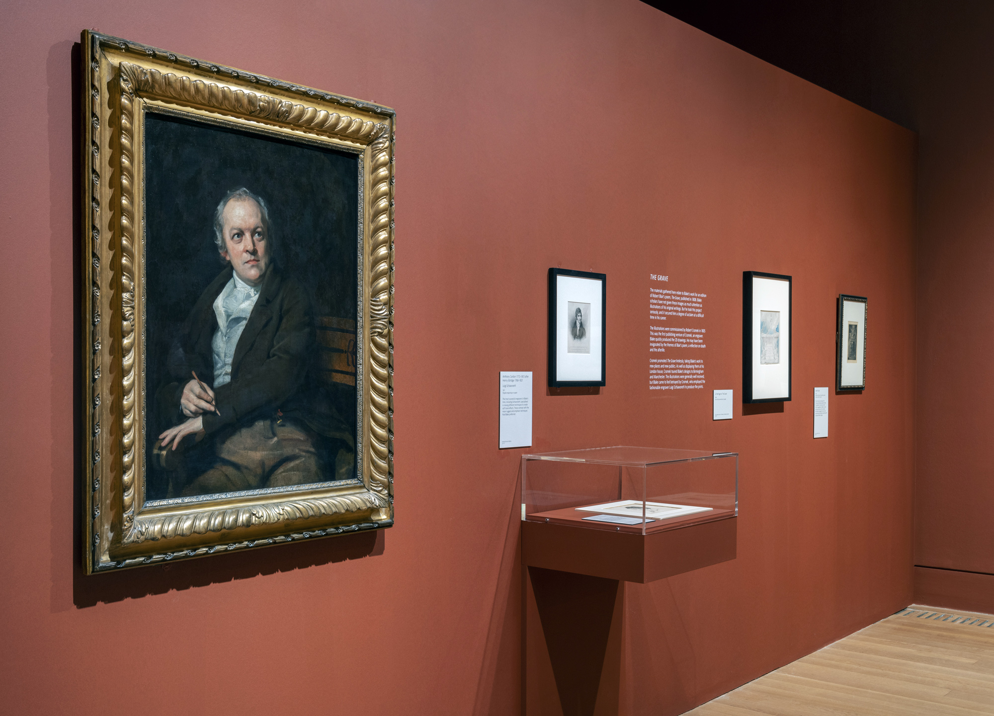 Installation view of the exhibition William Blake at Tate Britain, London showing Blake’s Age Teaching Youth (c. 1785-1790)