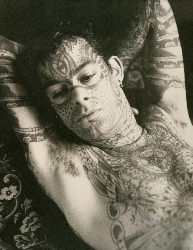 Ginsberg first saw the photographs in 1982 and, according to O’Neal, was inspired to add his distinctive captions to the backs of the prints. His brief handwritten notes, which often reflect personal or historic observations, strike a wonderful tone. A caption that accompanies a picture of a group of men holding the banner WE ARE EVERYWHERE reads, “We all look pretty normal, boy next door, handsome punk, ad man’s delight, daughters of the American Revolution.” A shot depicting two men dressed in ancient Roman costume reads, “Clark Gable and Nero on a date, smiling for the 1920s Hollywood photogs.” His lengthy caption for the Johnson print (featured on the catalog cover) reads: “If I keep dressing up like this I’ll save the world from nuclear apocalypse. But will anyone love me for it? I’ll save the world anyway I know that looks good.” And still others honour the courageous and brave: one participant holds a wreath bearing the name Harvey Milk; Ginsberg wrote, “Harvey Milk died for your sins.” (He had initially written “our” but crossed it out).