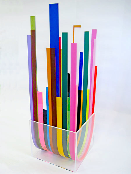 Similarly, Raquel, Waitress and Fashion Designer, Nolita, New York and Jerome, Retail Assistant and Fashion Designer, Soho, New York offer radical re-iterations of space, this time with less temporal associations. In Raquel, two red chevrons at top left and right frame the face of the subject, playing off the colour-changing hair of the waitress/fashion designer, the title of the photograph an ironic comment on the intertextual nature of contemporary life: a waitress (low paid, menial labourer) and a fashion designer (famous, highly visible entrepreneur). The nonchalantly limp-wristed, ringed hand and over large glasses, coupled with the bedraggled threads of the black shorts – echoing the tousled nature of the subjects hair – also belies the statement “fashion designer.” The word Cervesas (beer) offers a dichotomy with the coloured bottles of flavoured water that surround the lower half of the subject while the reflection in the window behind Raquel provides a metaphorical vista into this distorted world view.