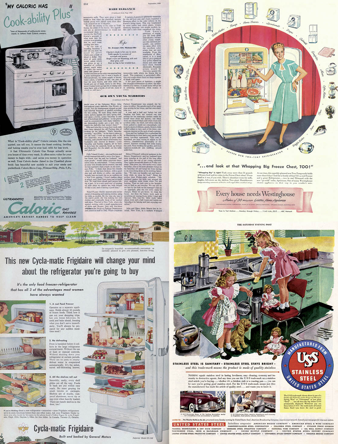 This first section includes historical material like the original lithograph View of New York by John William Hill (1836); The American Woman’s Home by Catharine Beecher, the bible of “domestic feminism”; a Ford T Touring (1923) produced by General Motors, and films like The Suburbanite (1908), among other Harold Lloyd and Buster Keaton classics.