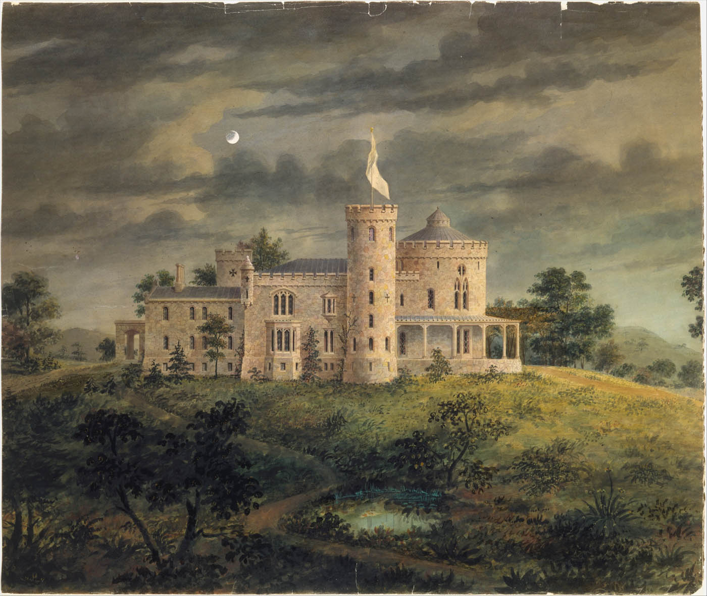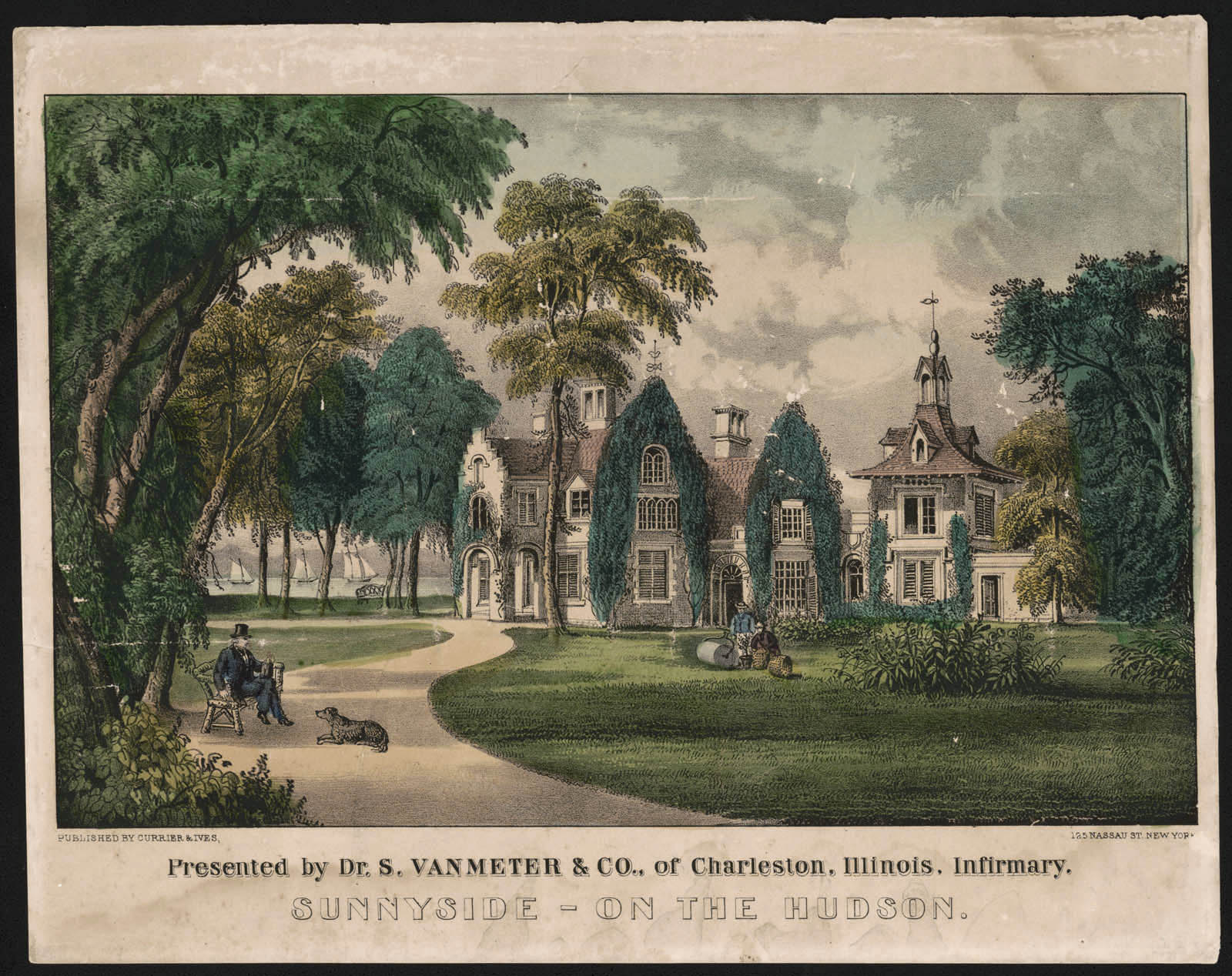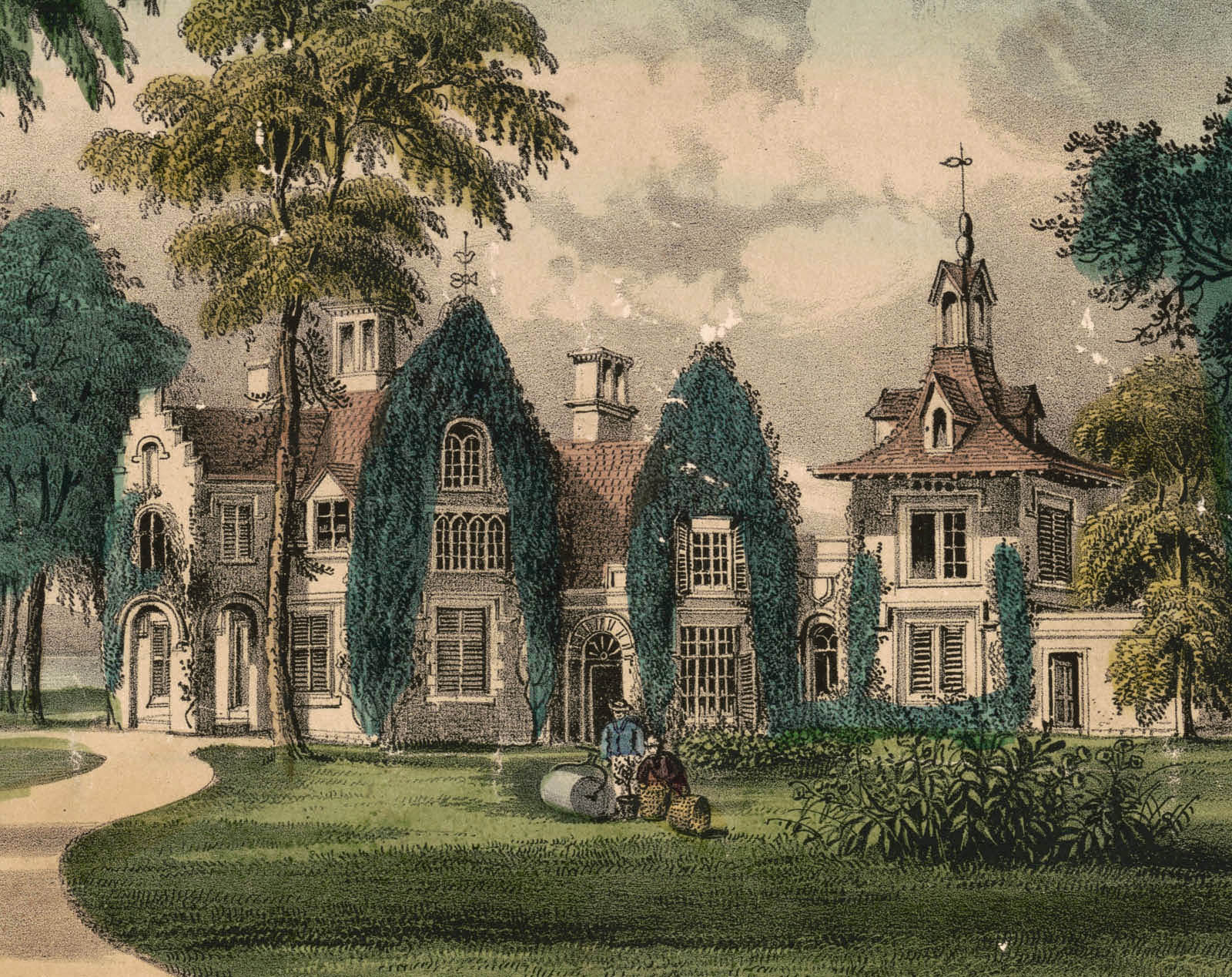 Davis’ most successful castellated villa was built for dry-goods merchant John J. Herrick. The design was dominated by an enormous three-story circular tower facing west over the Hudson River. The tower housed an extraordinary circular parlor that had an intricately vaulted ceiling springing from a massive central cluster of delicate Gothic columns. Ericstan was demolished in 1944.