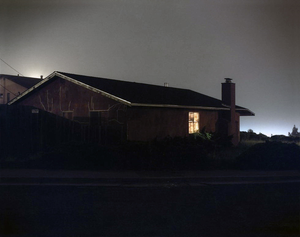 Crewdson created this twelve-part portfolio, Dream House, as a commission for The New York Times Magazine in 2002. The cinematic character of these frozen vignettes is underscored by the use of Hollywood actors (Gwyneth Paltrow, Tilda Swinton, and Philip Seymour Hoffman among others) whose celebrity contrasts with the “Anytown” anonymity of their environments.