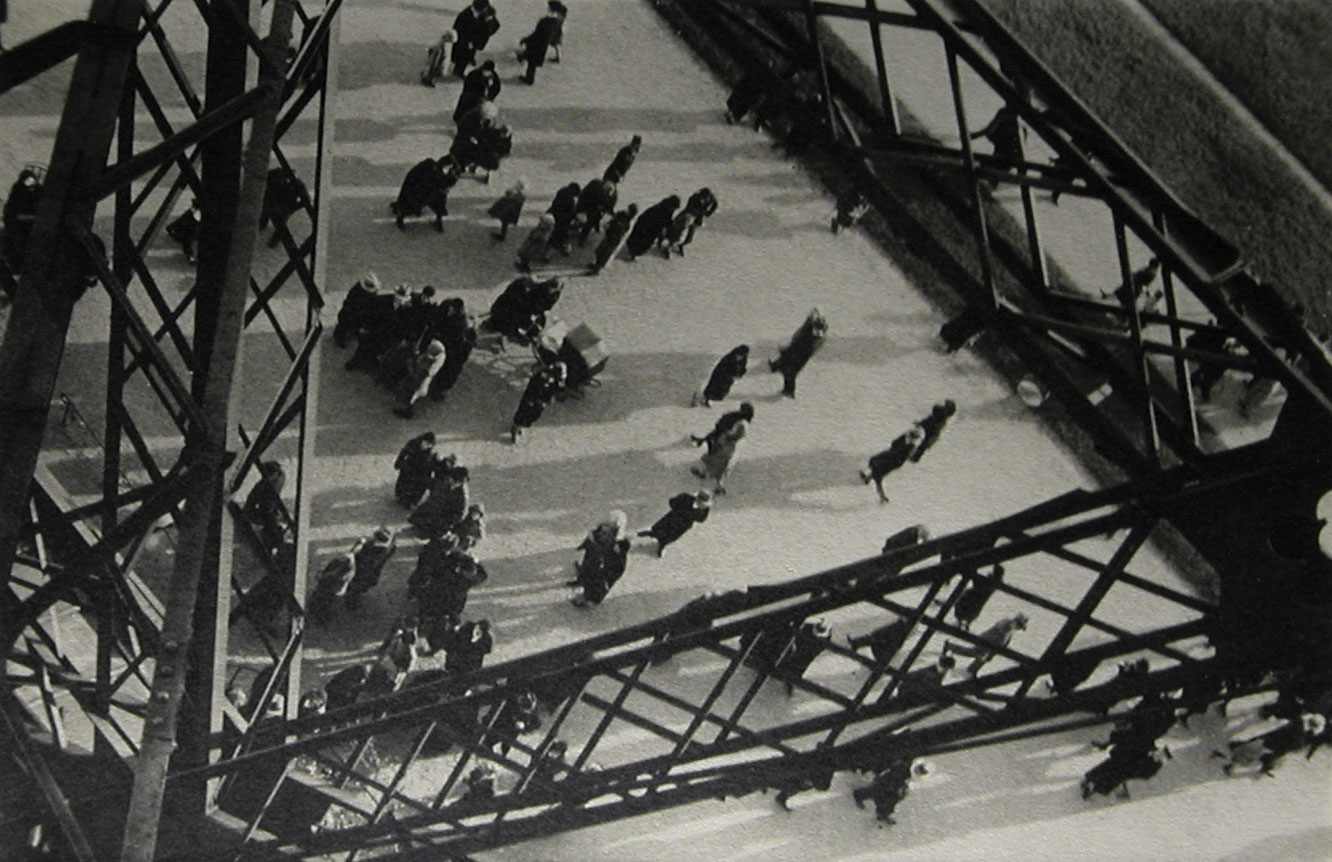 This section includes images of the streets and buildings of Paris – of the bustling Champ-de-Mars and the deserted Avenue du Maine – and features a large selection of photographs by Ilse Bing. In her modernist views of urban architecture, Bing provides a modern take on the old city through unexpected angles and dramatic cropping.
