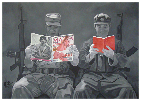 The title “Sots Art” refers to a movement created in 1972 by the Moscow born duo Vitally Komar and Alexander Melamid, who deconstructed Socialist Realism and combined it with elements of Western Pop art. Boris Mikhailov took photographs depicting sanctioned socialist imagery (parades, students in military training, athletic youth…), then subverted them using garish colours that reflect his disillusionment with false Soviet ideals.