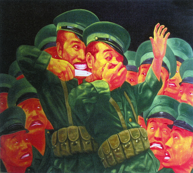 “Mikhailov’s series “Luriki” (1971-85) took found black-and-white photographs of anonymous soldiers and sailors, or of happy families who are all alike, and overpainted them with hand coloring – a common technique in the Soviet Union, where color printing was expensive. These were probably the first artworks in the Soviet Union to use found imagery to capture the Soviet zeitgeist and tweak the regime. Yet their garishness gave him an out with irony-blind censors, to whom he could always explain that he was just trying to make the sitters look prettier.”