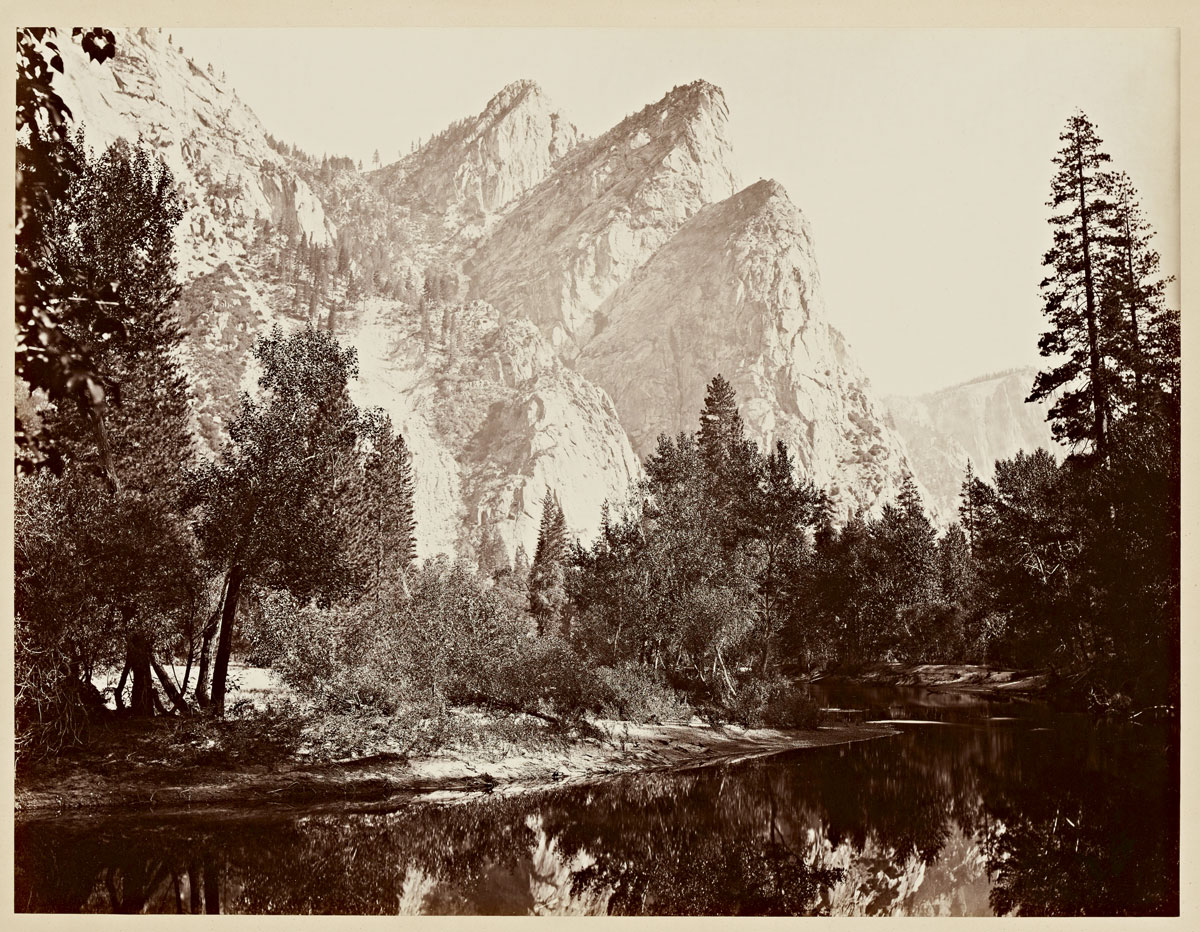 Organised both thematically and chronologically into eight sections, the exhibition begins where Adams’ own photographic life began. Perhaps no place had a more lasting influence on him than Yosemite National Park, in his native California. Adams first visited Yosemite at age 14, bringing along a Kodak Box Brownie camera given to him by his father, and returned almost every year for the rest of his life. It was not only where he honed his skills, but also where he came to recognise the power of photographs to express emotion and meaning. Showcasing its spectacular granite peaks, lakes, rivers and waterfalls, Adams’ photographs of Yosemite have become virtually synonymous with the park itself. Adams, however, was not the first to take a camera into the mountains of California. He acknowledged his debt to the earliest photographers to arrive in the Yosemite Valley, including Carleton Watkins, who in the 1860s began to record scenic views with a cumbersome large-format camera and fragile glass plate negatives processed in the field. Watkins’ 19th-century photographs helped to introduce Americans “back east” to the nation’s dramatic western landscapes, while Adams’ 20th-century images made famous the notion of their “untouched wilderness.” Today, photographers such as Mark Klett are grappling with these legacies. Klett and his longtime collaborator Byron Wolfe have studied canonical views of Yosemite Valley by Adams and Watkins, using the latest technology to produce composite panoramas that document changes made to the landscape over more than a century, as well as the ever-growing presence of human activity.