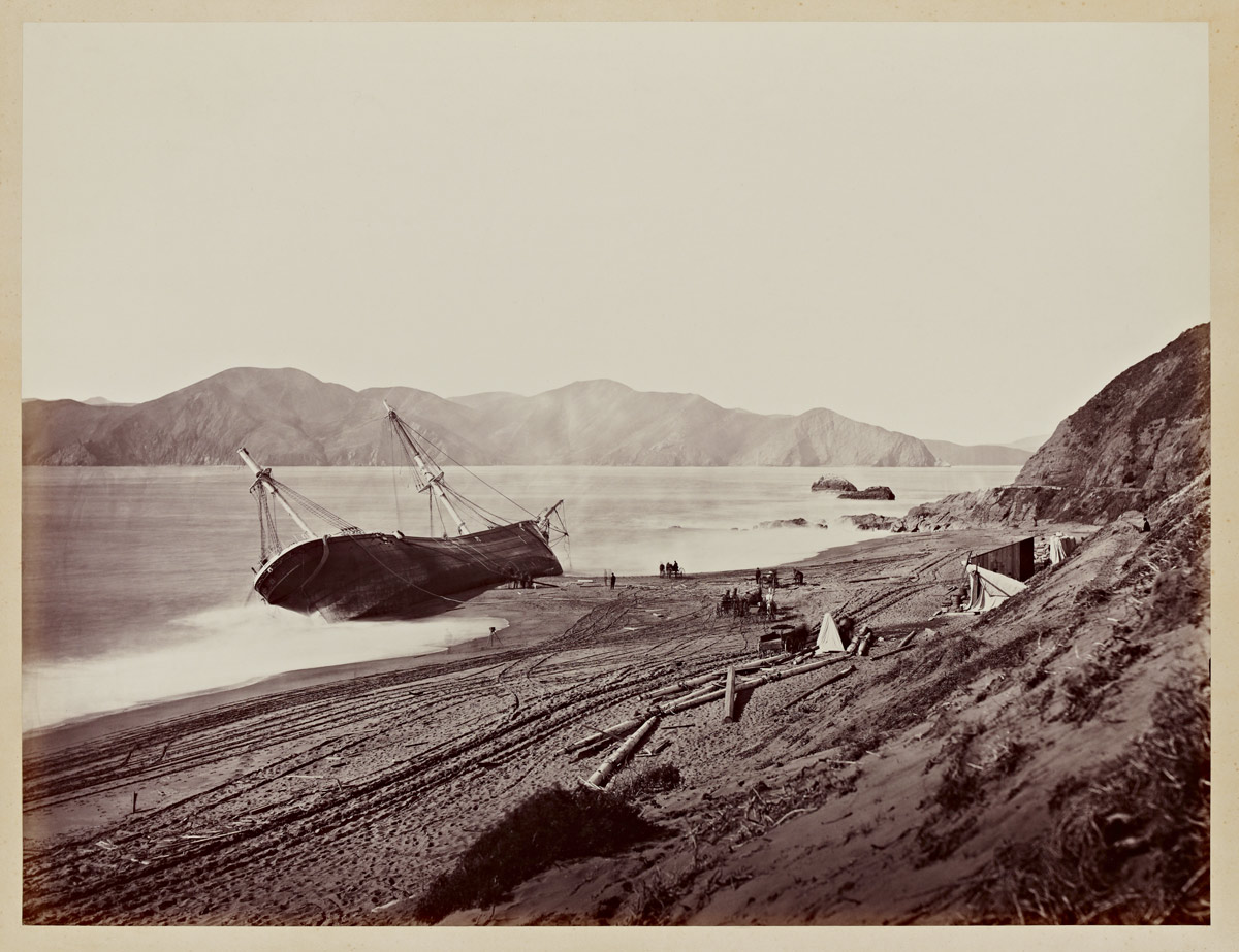 The third section of the exhibition focuses on Adams’ hometown of San Francisco, which has long captured photographers’ imaginations with its rolling hills and dramatic orientation toward the water. The city’s transformation over more than a century – including changes made to the urban landscape following the devastating earthquake and fire in 1906 and the rise of skyscrapers in the later 20th century – can be observed in the juxtaposition of panoramas by Eadweard Muybridge and Mark Klett, taken from the same spot 113 years apart. Adams’ images of San Francisco from the 1920s and 1930s trace his development into a modernist photographer, as he experimented with a large-format camera to produce maximum depth of field and extremely sharp-focused images. During the Great Depression, Adams also took on a wider range of subjects, including the challenging reality of urban life in his hometown. He photographed the demolition of abandoned buildings, toppled cemetery headstones, political signs and the patina of a city struggling during difficult times. One sign of hope for the future at the time was the construction of the Golden Gate Bridge, which began in 1933. Adams’ The Golden Gate before the Bridge (1932), taken near his family home five years before the bridge’s opening in 1937, is displayed alongside four contemporary prints from the Golden Gate Bridge project (Private Collection, Cambridge) by Richard Misrach, taken from his own porch in Berkeley Hills. Placing his large-format camera in exactly the same position on each occasion, Misrach recorded hundreds of views of the distant span, at different times of the day and in every season. The series, photographed over three years from 1997 to 2000, was reissued in 2012 to mark the 75th anniversary of the Golden Gate’s landmark opening. The vast expanses of sky in Misrach’s works echo the focus on the massive cumulus cloud in the earlier photograph by Adams, who was fascinated with changing weather and landscapes with seemingly infinite space.