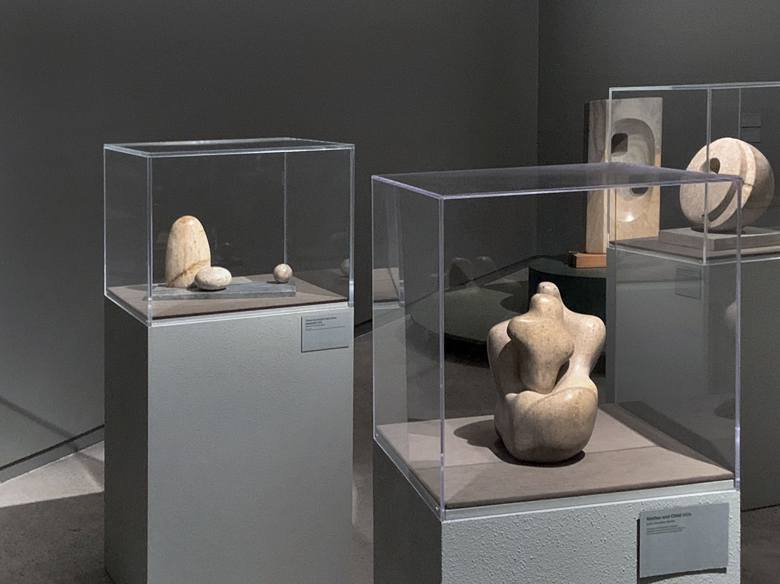 The exhibition demonstrates the shift in Hepworth’s approach from figurative and naturalistic to increasingly simplified and abstract forms. Though concerned with abstraction, she created work that was predominantly about relationships: between the human figure and the landscape; between forms presented side-by-side; between colour and texture; and between individuals and groups of people.