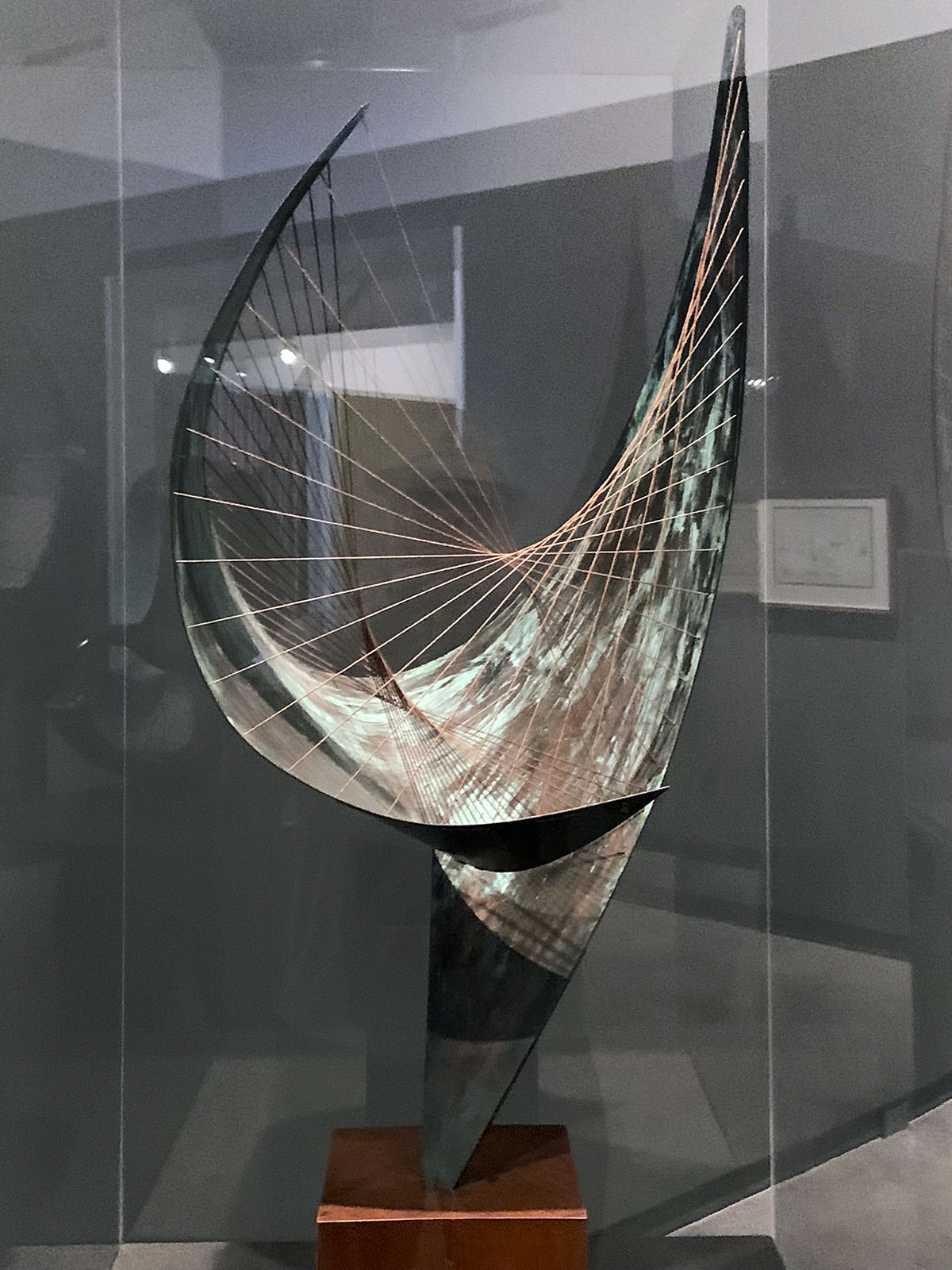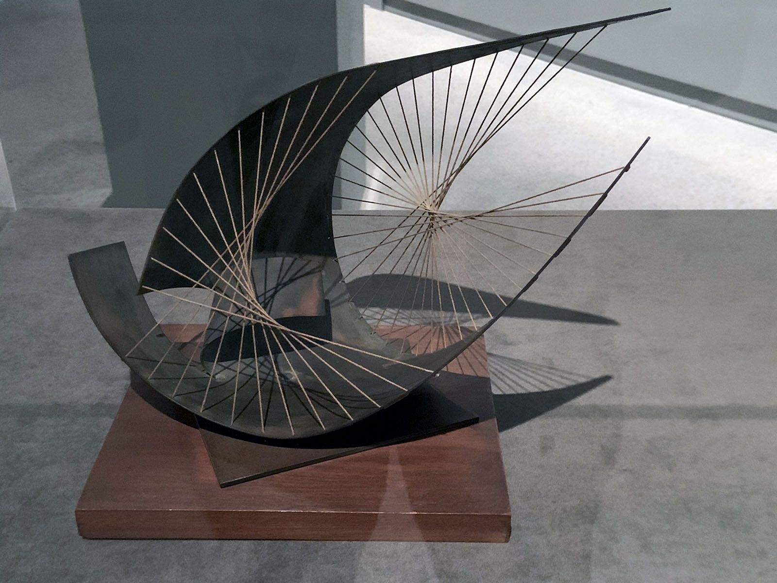 Barbara Hepworth (British, 1903-1975) Orpheus (Maquette 2) Version II (installation views) 1956, 1959 edition, edition 1/3 Brass and string on wooden base Art Gallery of New South Wales, Sydney Purchased 1959