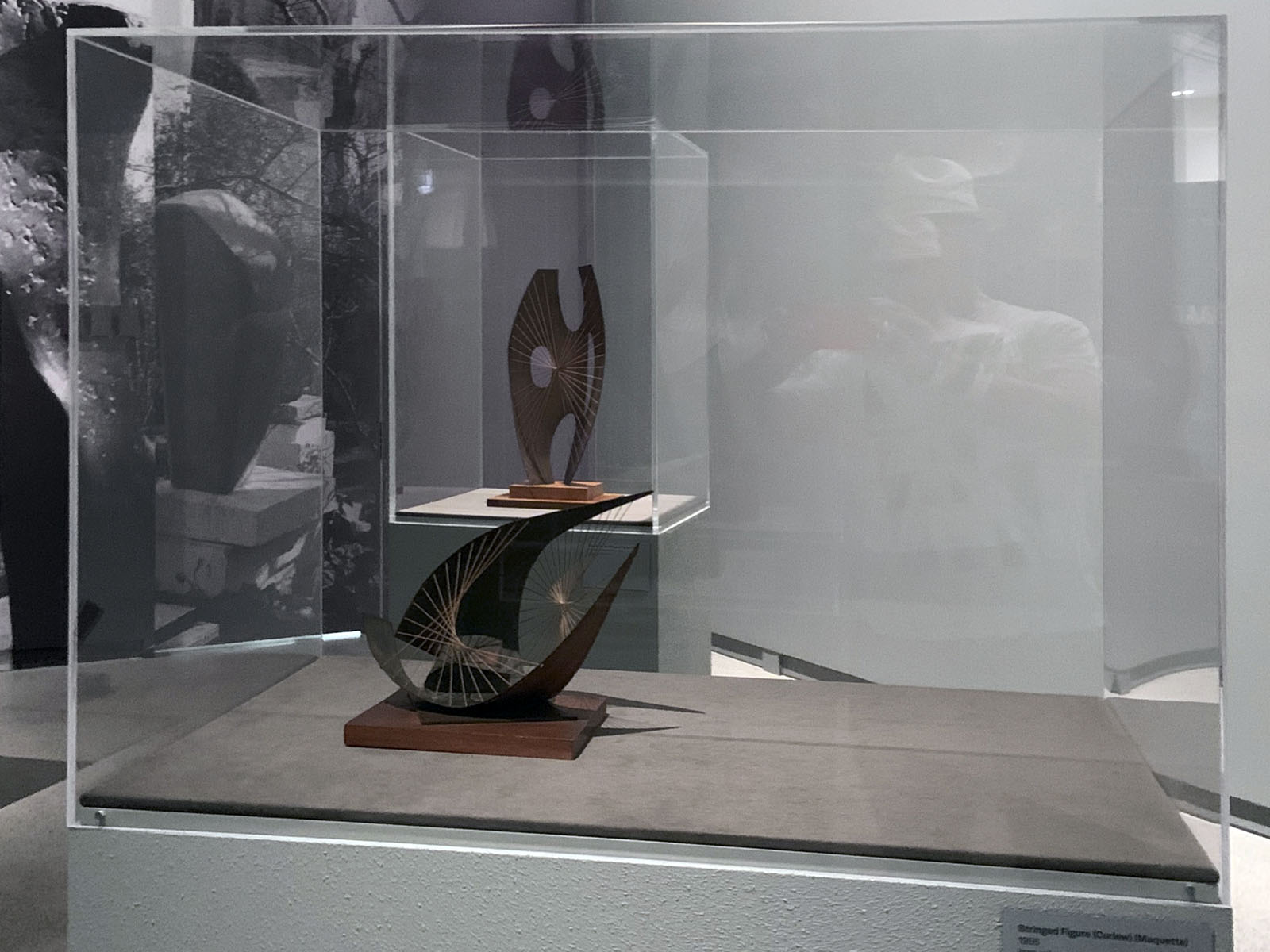 Installation view of the exhibition Barbara Hepworth: In Equilibrium at the Heide Museum of Modern Art, Melbourne showing at front Stringed Figure (Curlew) (Maquette) 1956; and at rear Maquette for Winged Figure 1957 Photo: Marcus Bunyan