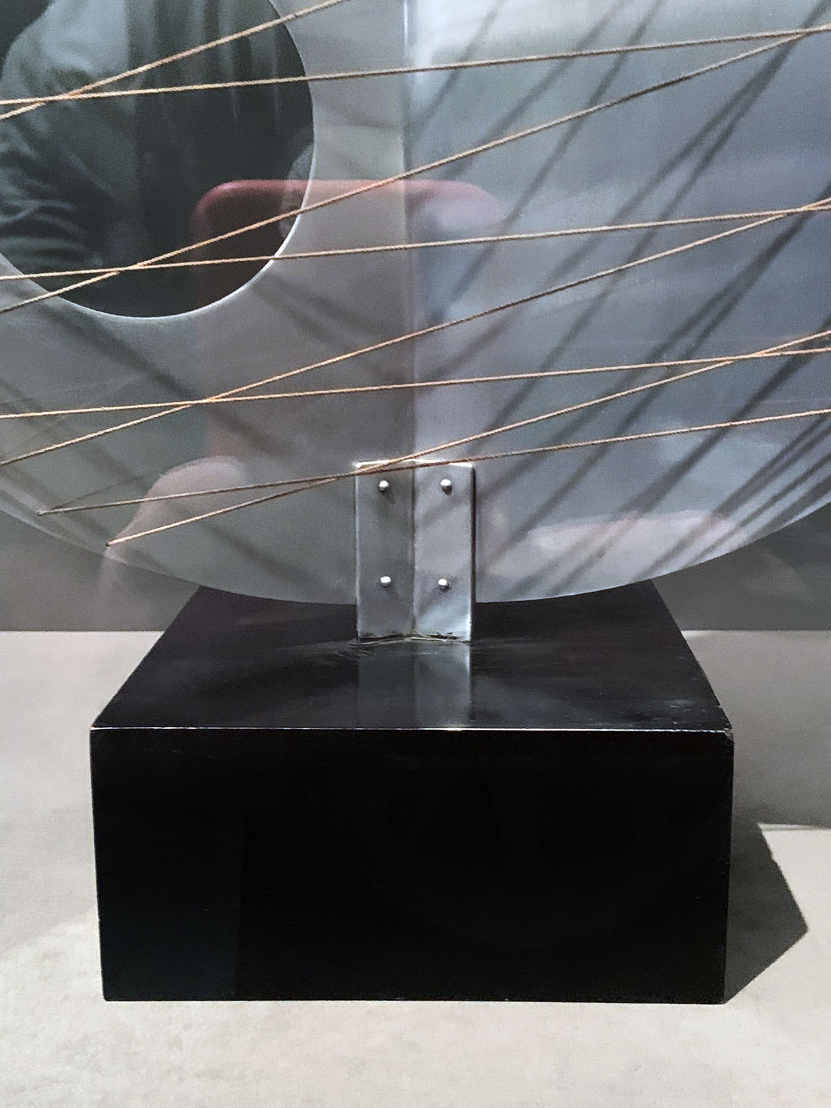 Barbara Hepworth (British, 1903-1975) Disc with Strings (Moon) (installation views) 1969 Aluminium and string Private collection, Oxford, United Kingdom Photos: Marcus Bunyan