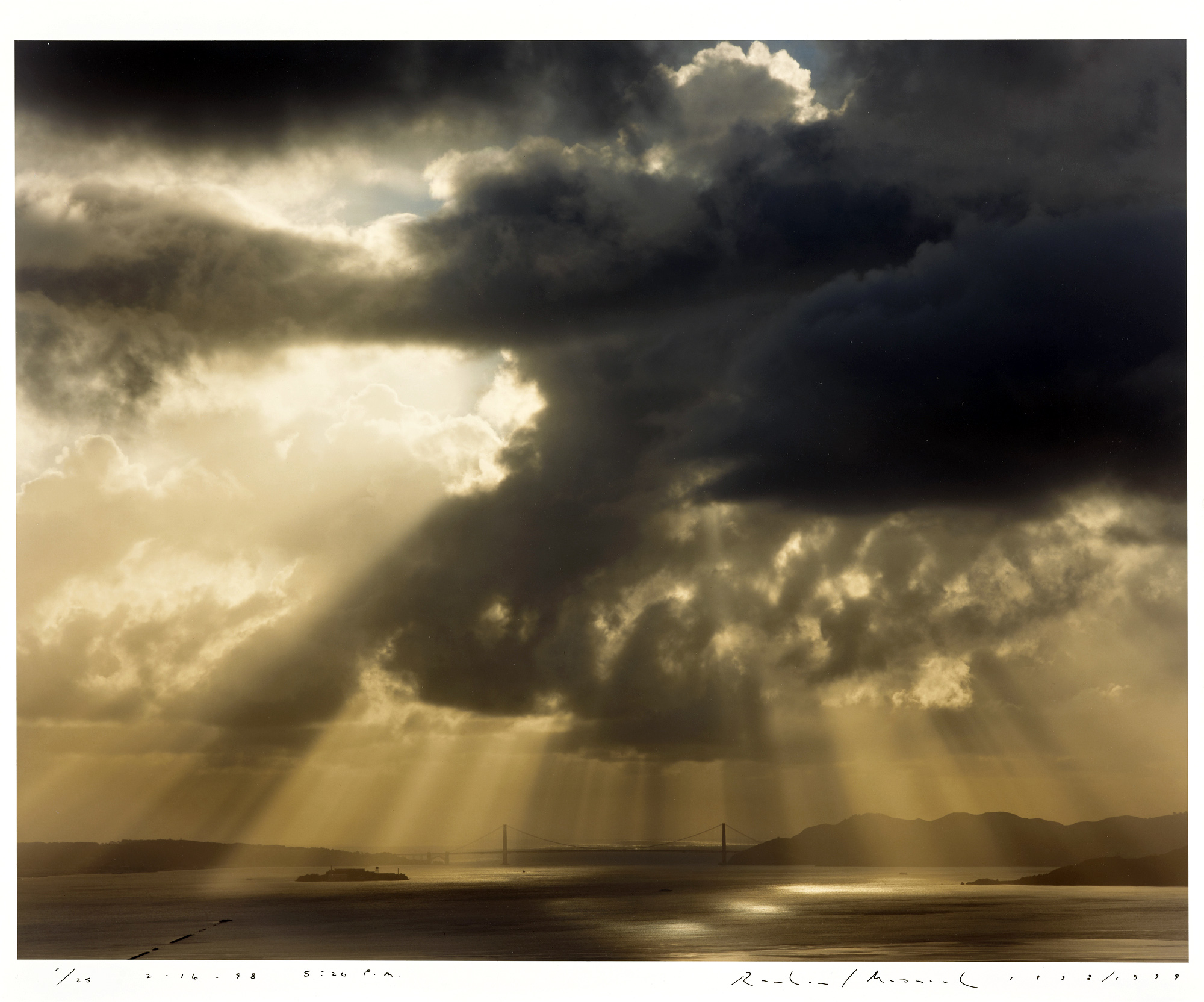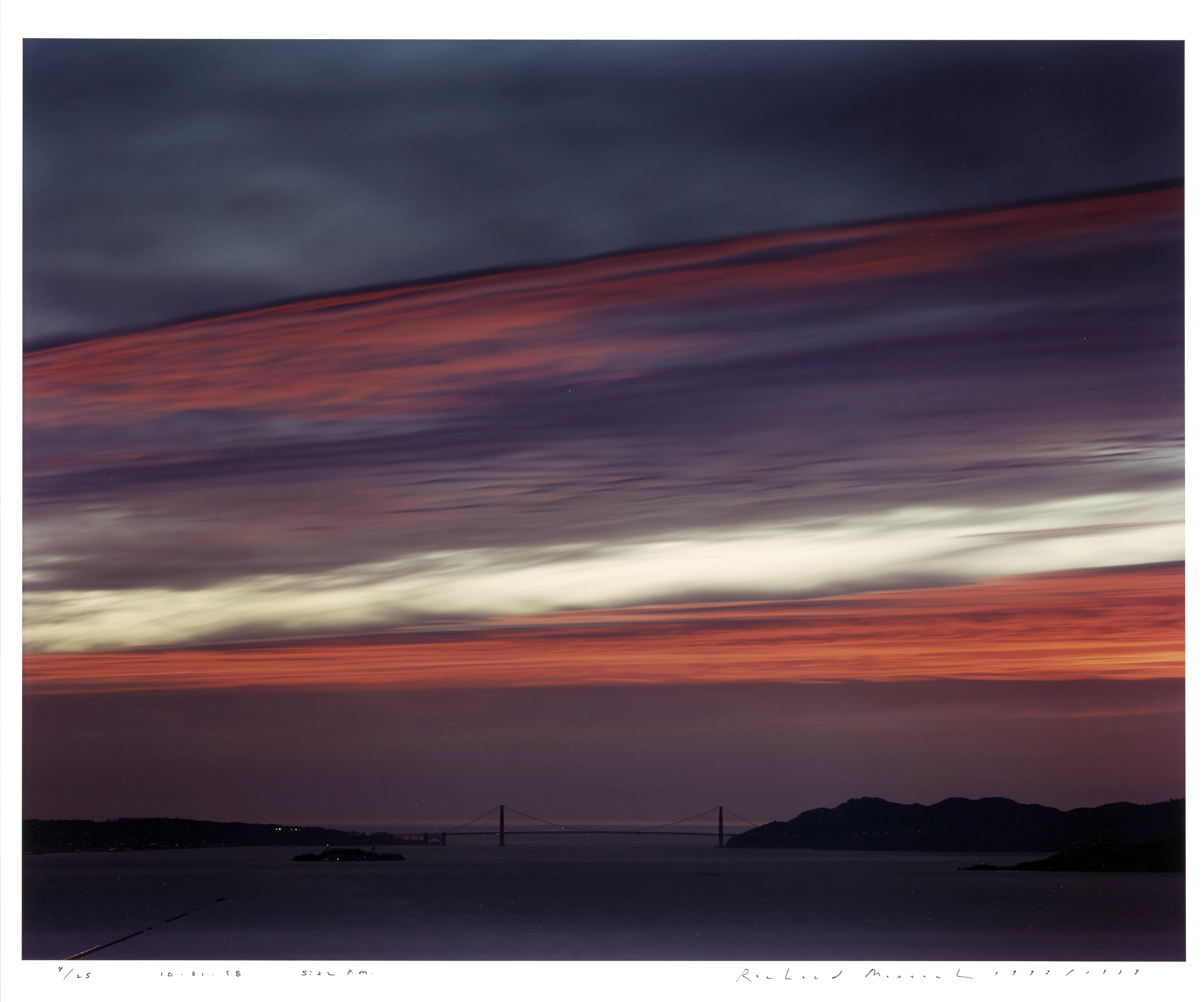 A number of artists in the exhibition document seasonal and man-made changes in the landscape. In a 1953 series by William A. Garnett, aerial photography is used to capture a walnut grove before and after the trees were felled to make way for a housing development. The startling perspective of Garnett’s images came to play an important role in the burgeoning environmental movement. Richard Misrach used his move to a new home in the hills above Berkeley, California, as an opportunity to take hundreds of photographs of the astonishing range of colours and atmospheric conditions surrounding the Golden Gate Bridge at sunset each evening. Several of his richly saturated sunset images are featured in the exhibition. Works by Roni Horn, Jem Southam, and Josef Sudek also trace changes in the natural world, to both political and poetic effect.